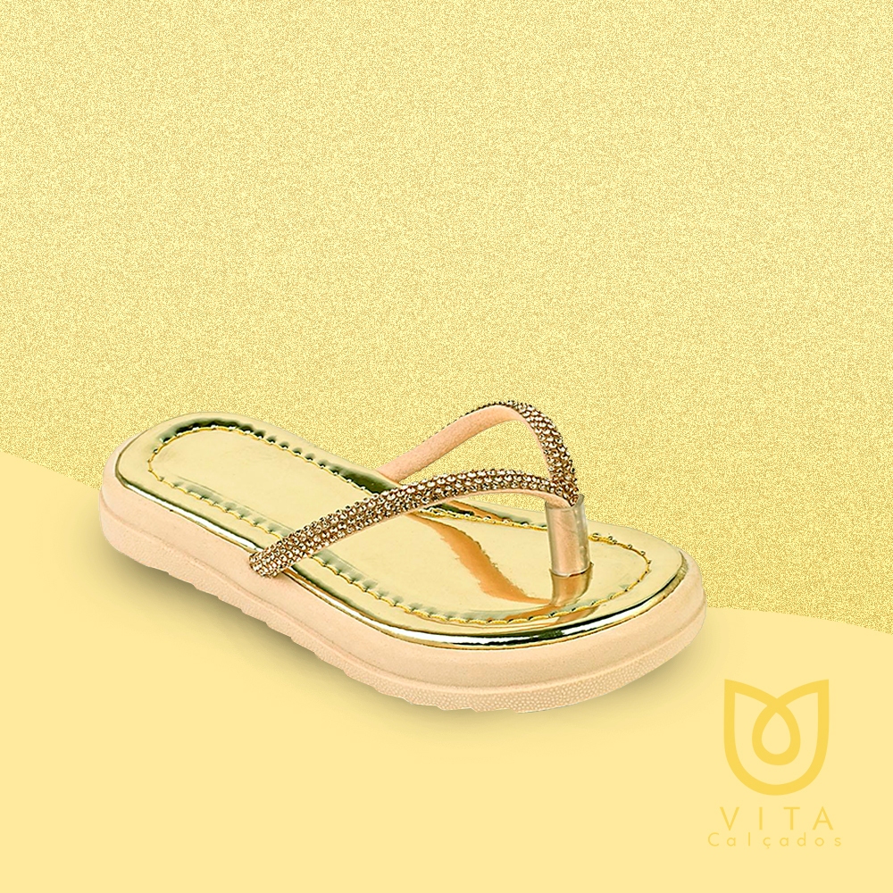 Chinelo Infantil Feminino Dourado Strass Colorido Confortável Fashion Calce Fácil Volta as Aulas
