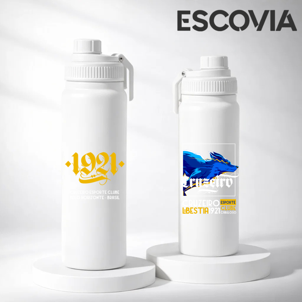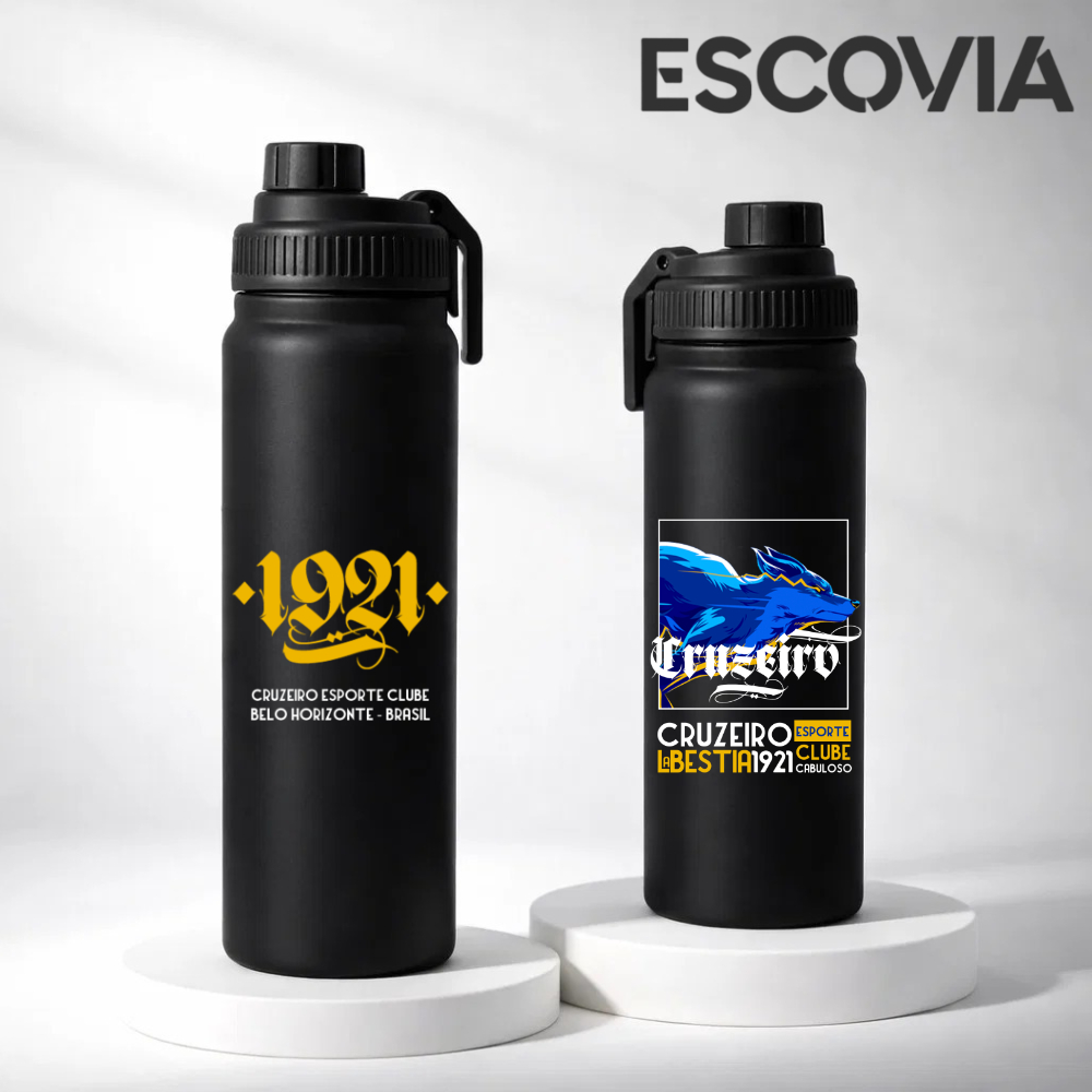 Garrafa Térmica Aço Inoxidavel Parede Dupla Time de Futebol Cruzeiro com tampa e Alça 800ml