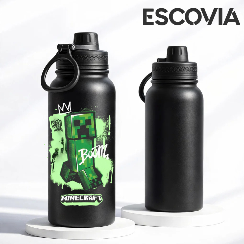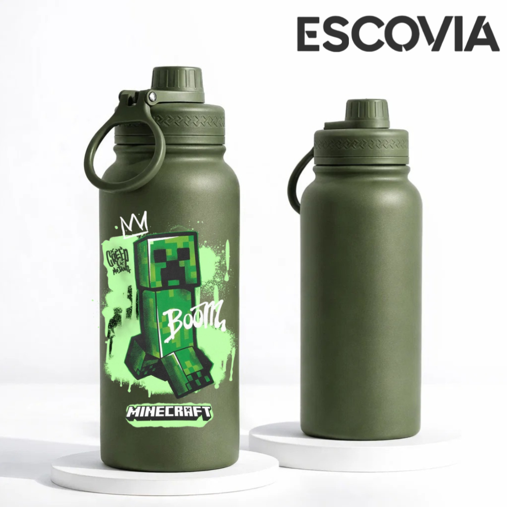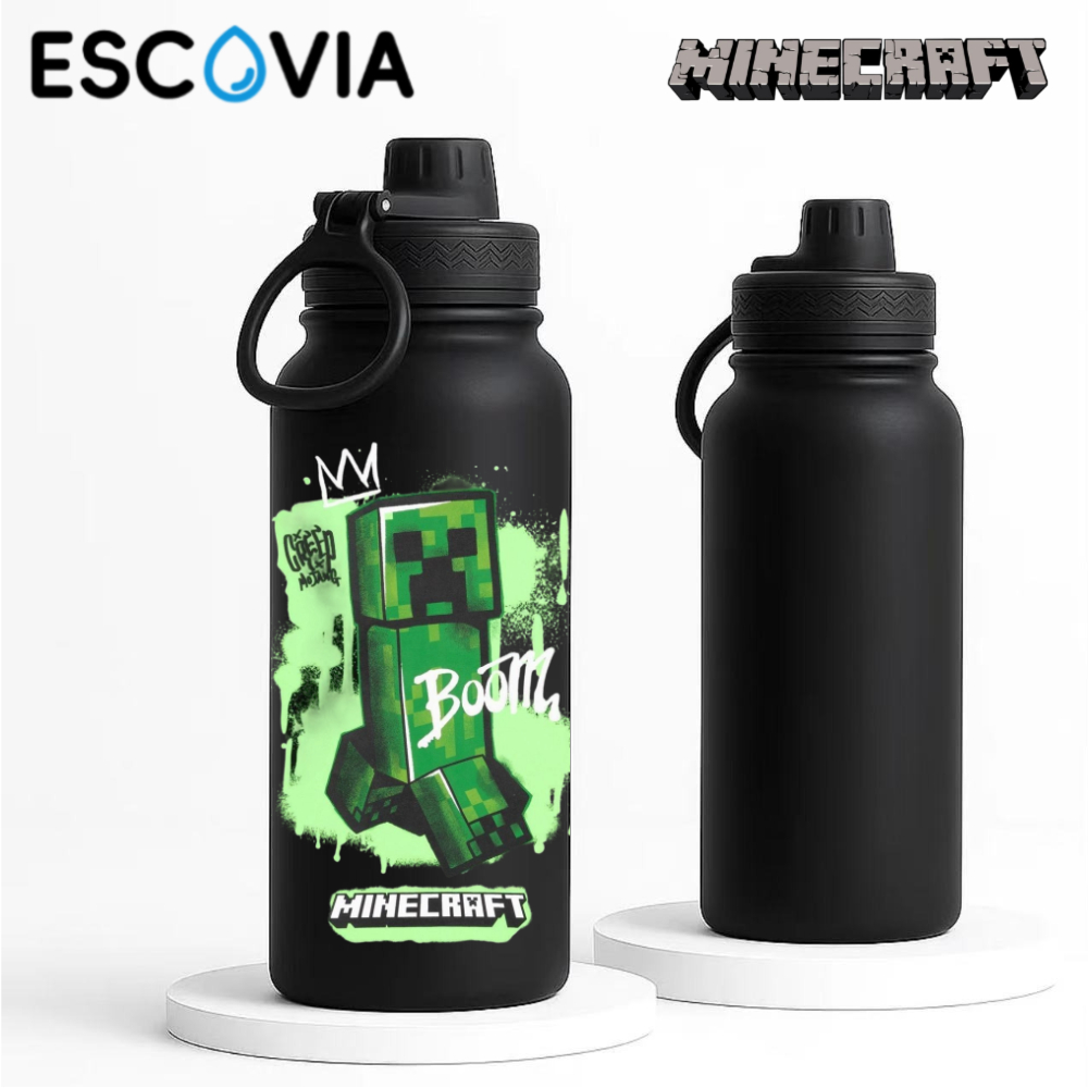 Garrafa Térmica Aço Inoxidavel Minecraft Creeper com tampa e Alça Esportivo 600ml