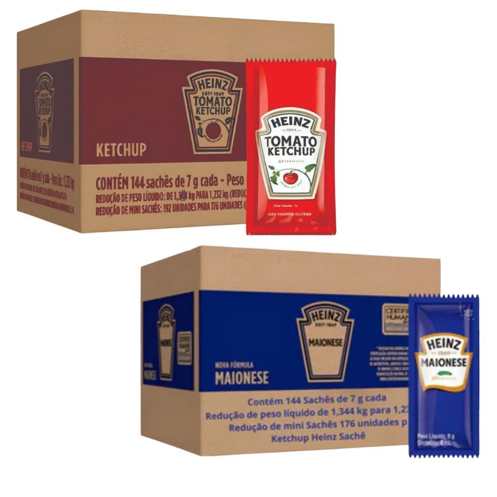 Kit Maionese e Ketchup Heinz 2 Caixas 288 Sachês 7g