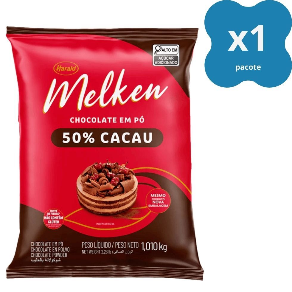 Chocolate em Pó 50% Cacau 1,05kg Melken Harald Para Doces e Sobremesas