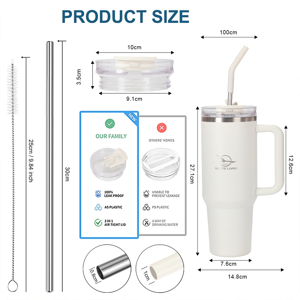 VENTO LIVRE Copo Térmico Inox Portátil 1200ml/1,2L Garrafa Térmica Inoxidável com Tampa e Canudo(Sem brindes 90ml)