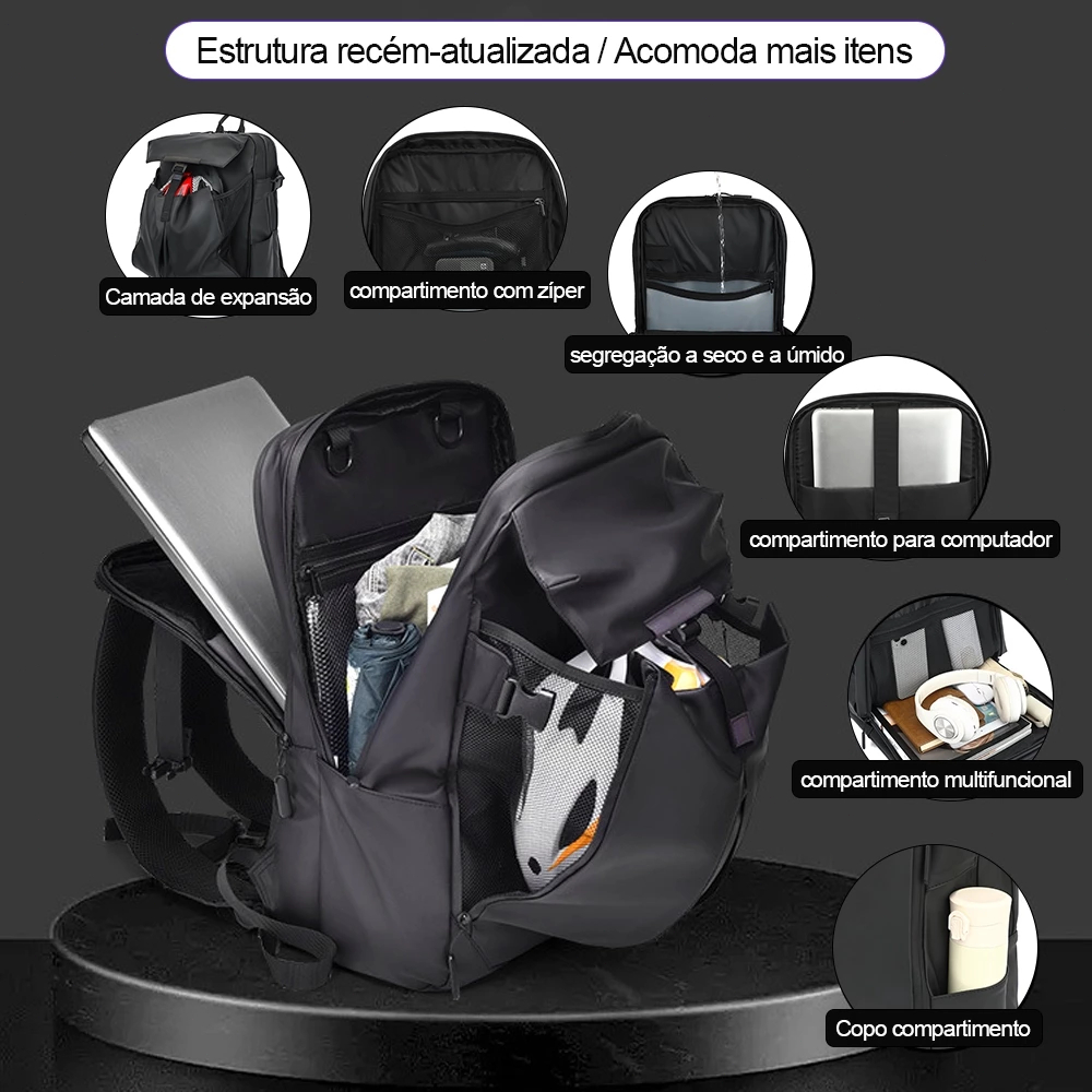 Mochila masculina impermeável reforçada para viagem e trabalho de negócios