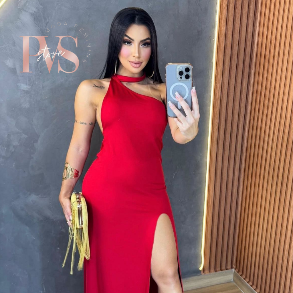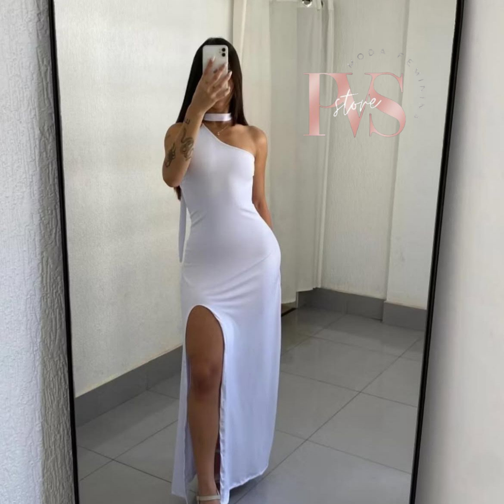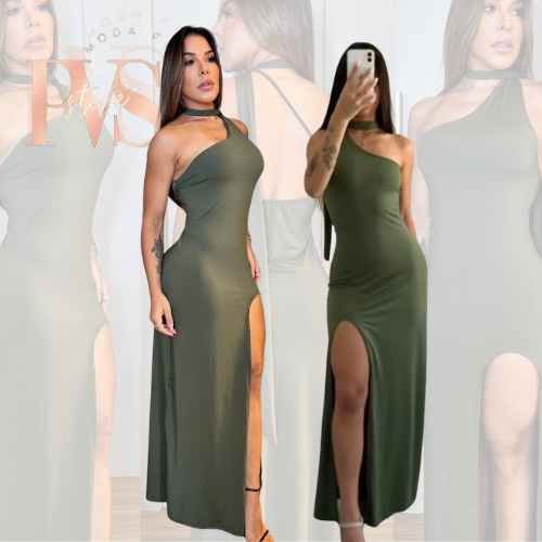Vestido Longo com Fenda Nula Manga Mula Manca Feminino com Faixa Elegante Sem Mangas