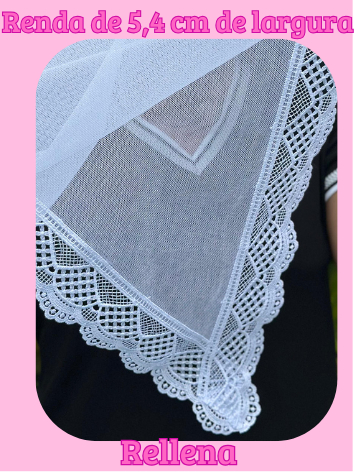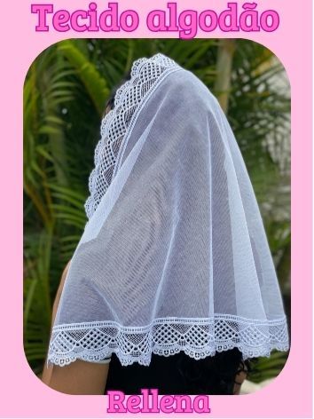 VÉU CCB ADULTO TECIDO ALGODÃO COM RENDA GUIPIR MEDIA YL140 QUADRADO OU REDONDO + PORTA VÉU