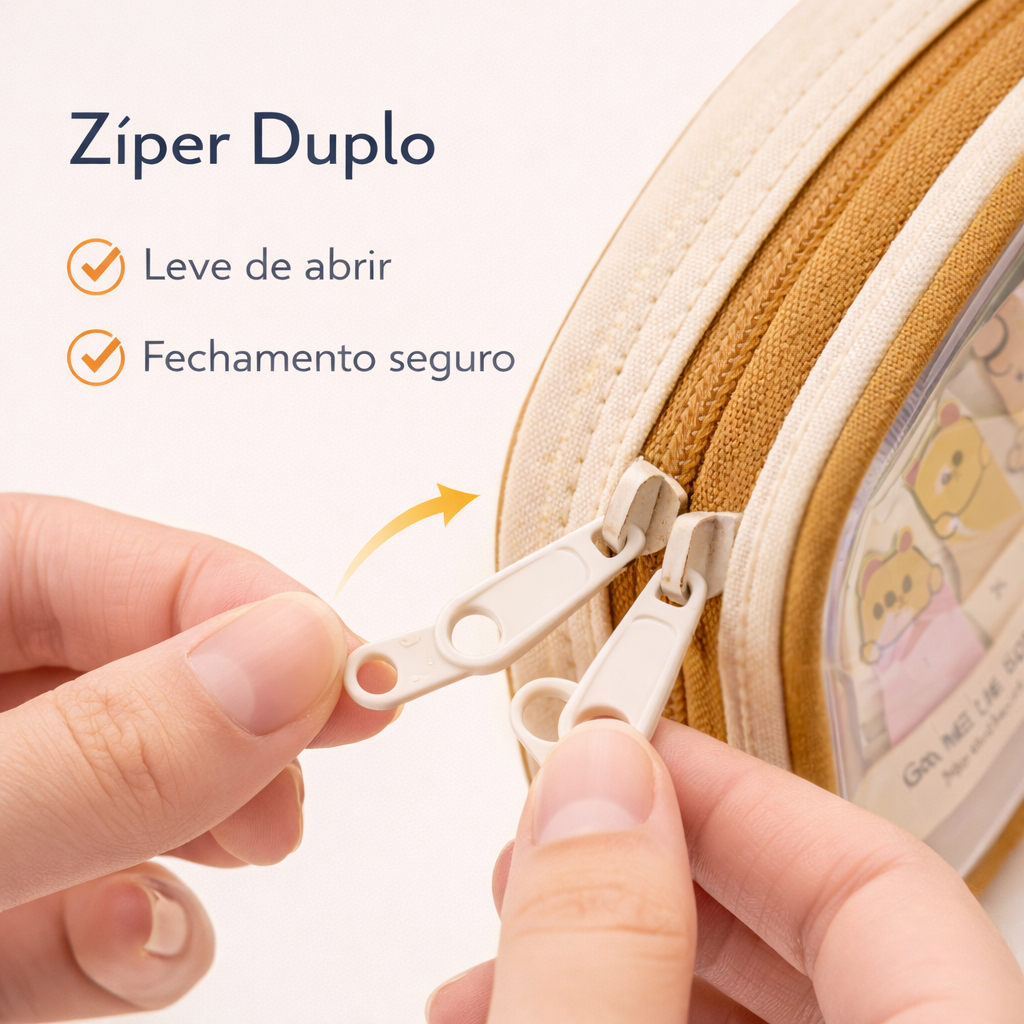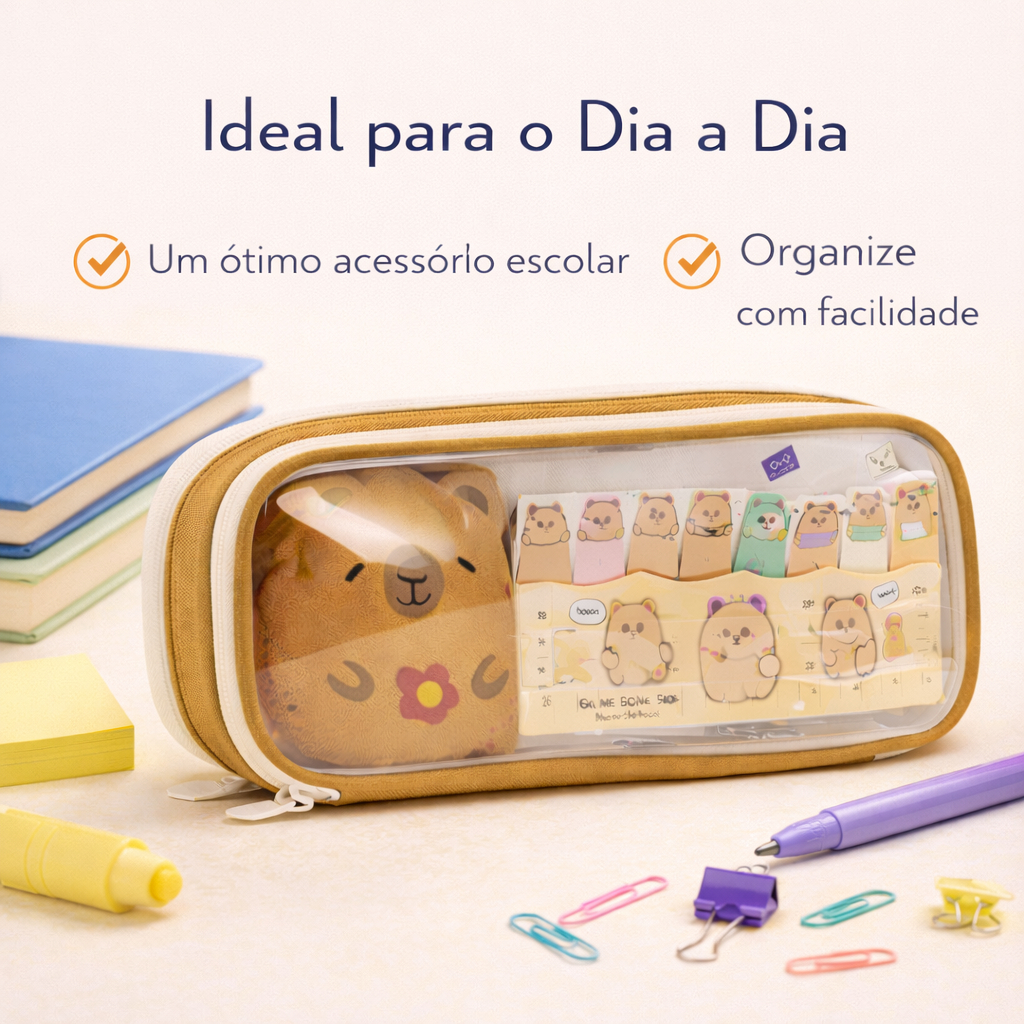 Estojo de Lápis Escolar Transparente Capivara Kuromi Grande Capacidade com Zíper Impermeável