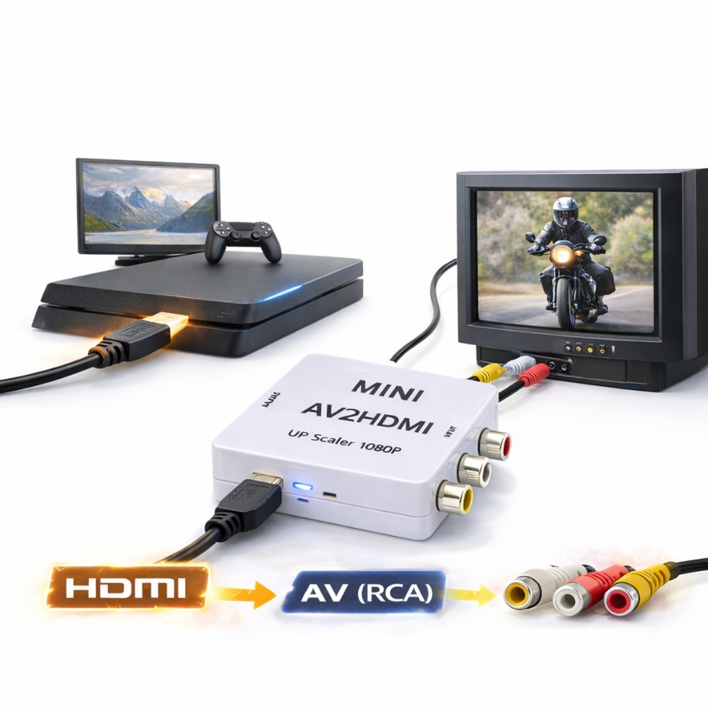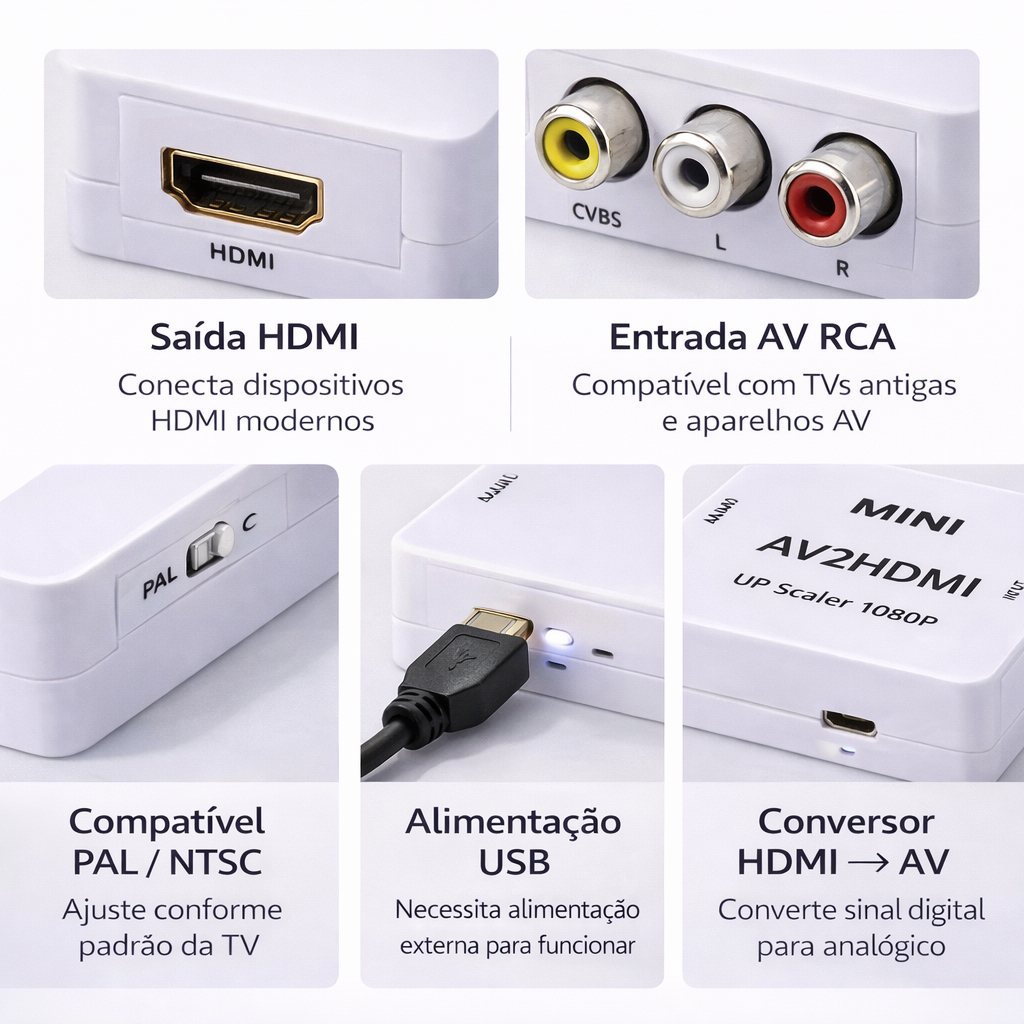 Conversor HDMI para RCA AV 1080p Mini Adaptador HDMI para TV Antiga DVD Videogame USB Plug & Play