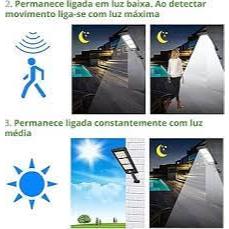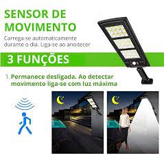 Luminária Led 300W 180cob Solar Refletore Poste Rua Sensor Controle Com 3 Funções
