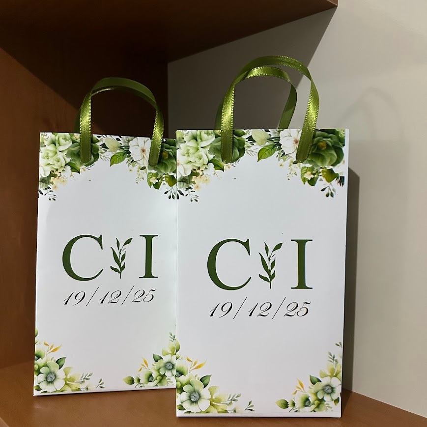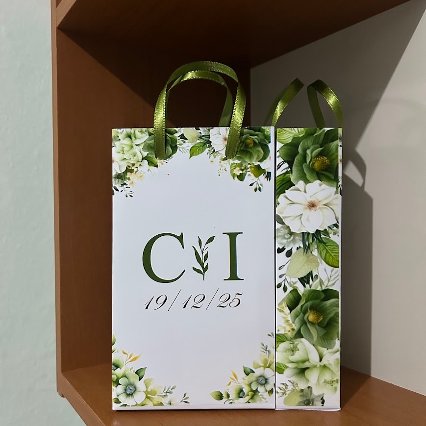 Sacolinha Surpresa Personalizada Casamento Flores Verde Oliva Lembrancinha Chique 17,5x10x4