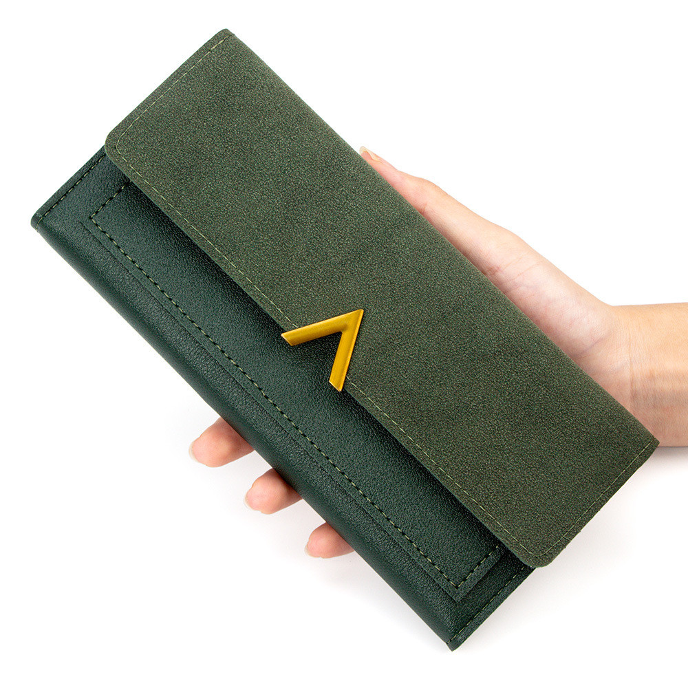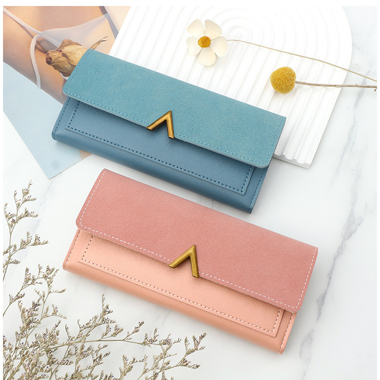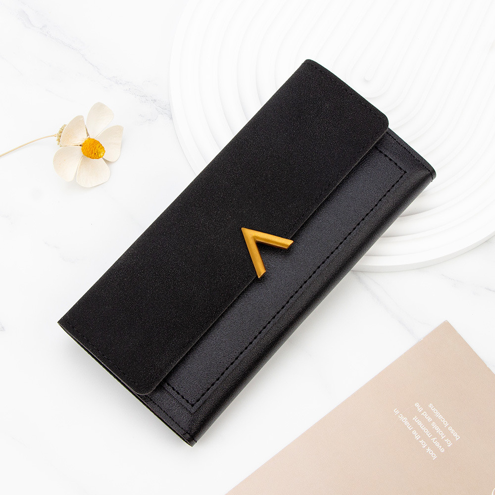 Carteira Feminina Longa Em Forma De V Com Fivela De Três Dobras , Bolsa De Mão Cartão zero
