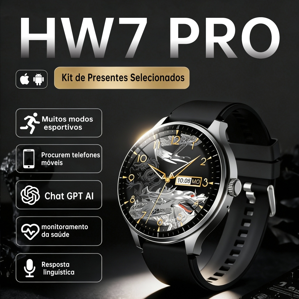 Relógio Smartwatch Masculino - Kit de Presente HW7 PRO+ Esportivo IP67 À Prova d'Água NFC Android e iOS