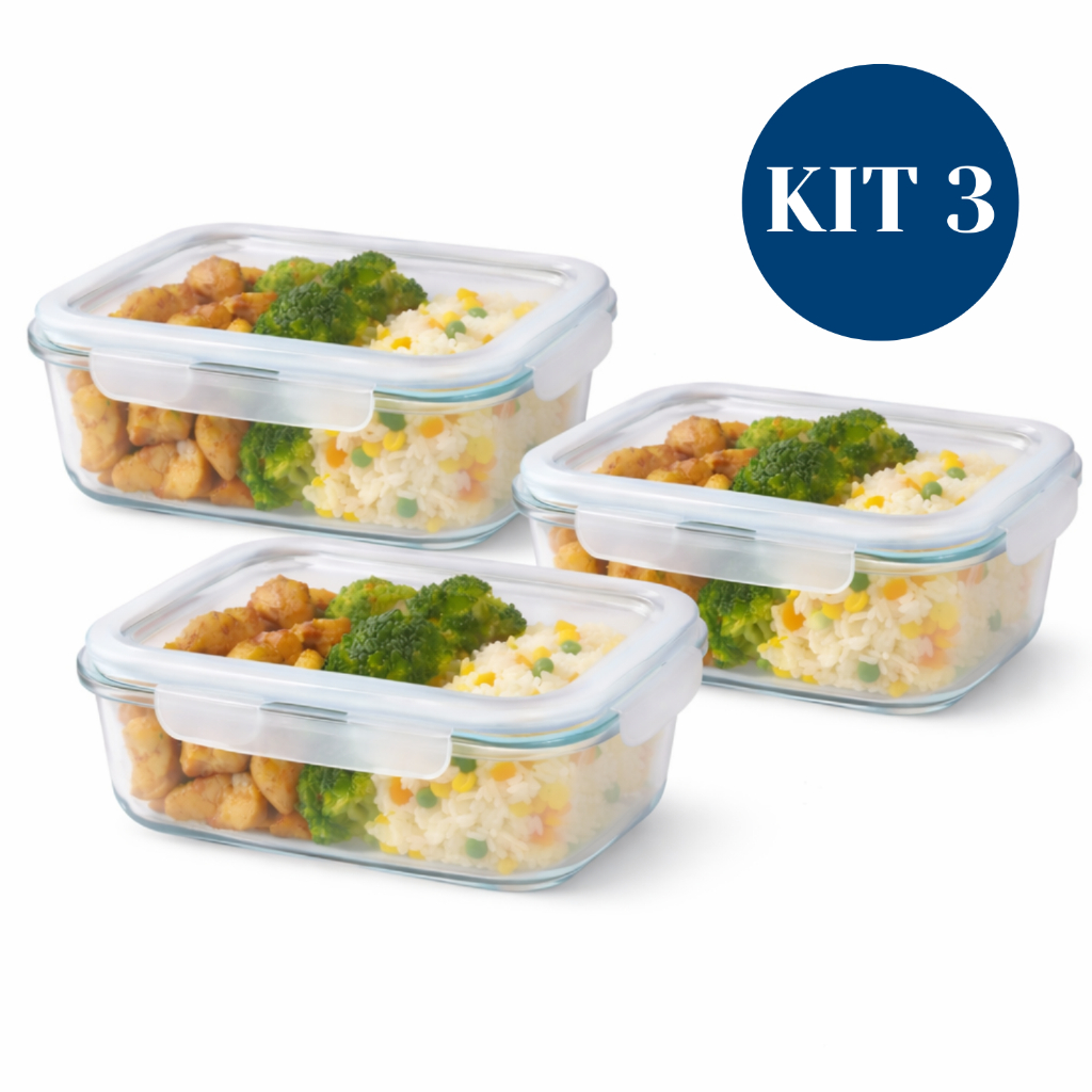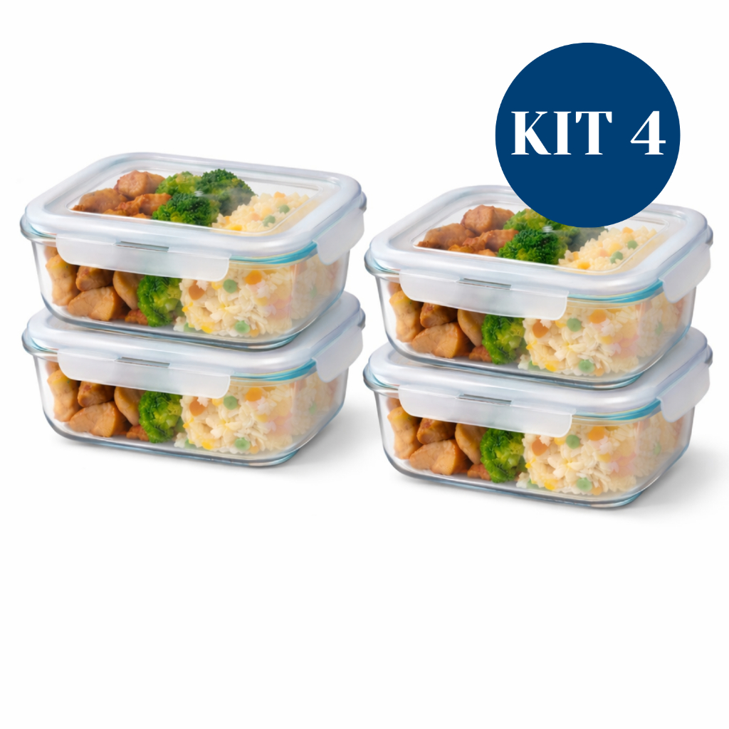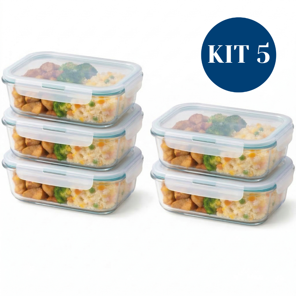 Kit Potes Herméticos Marmita de Vidro 630ml 1 a 5 Unidades - P/ Forno e Microondas