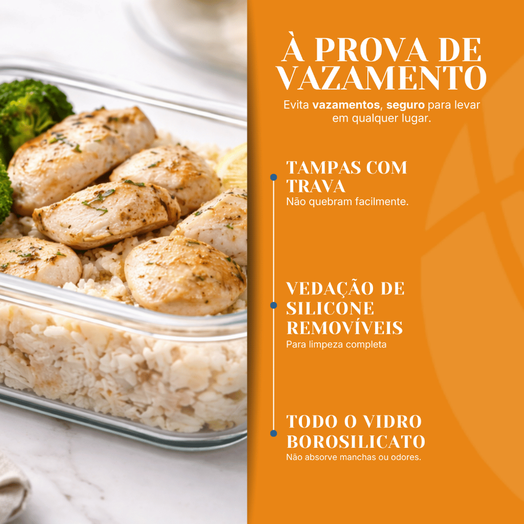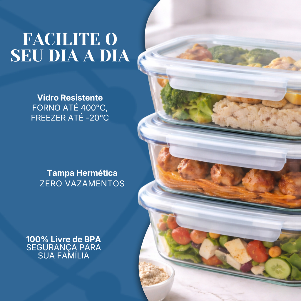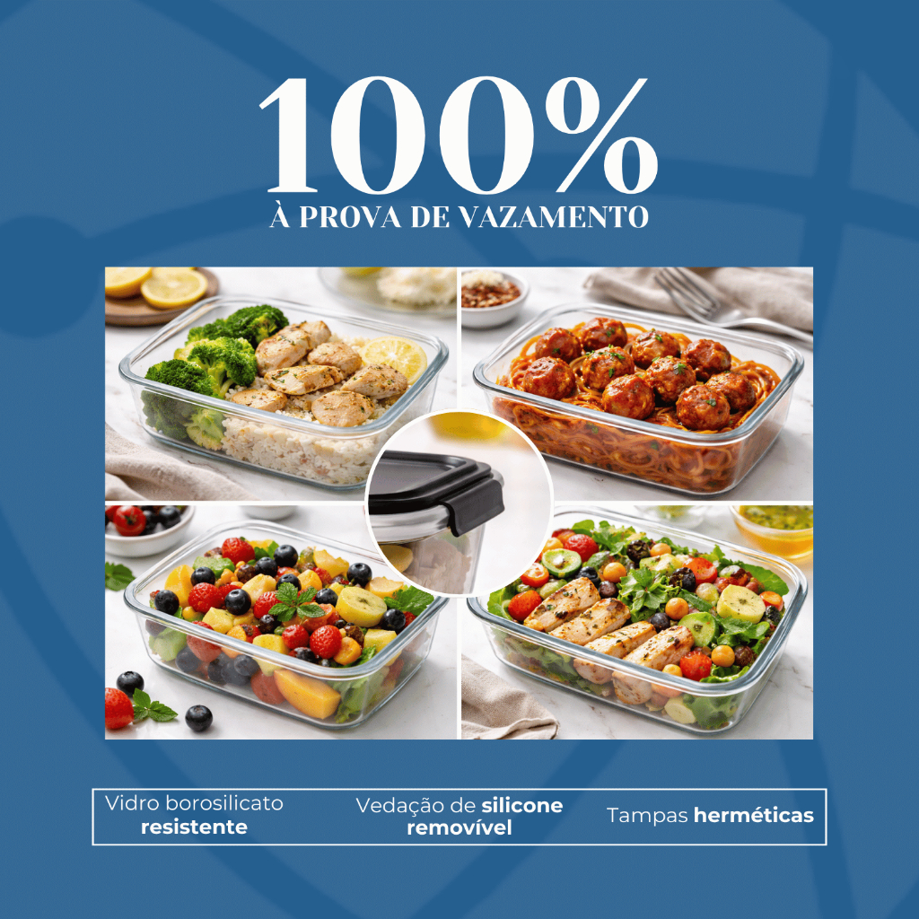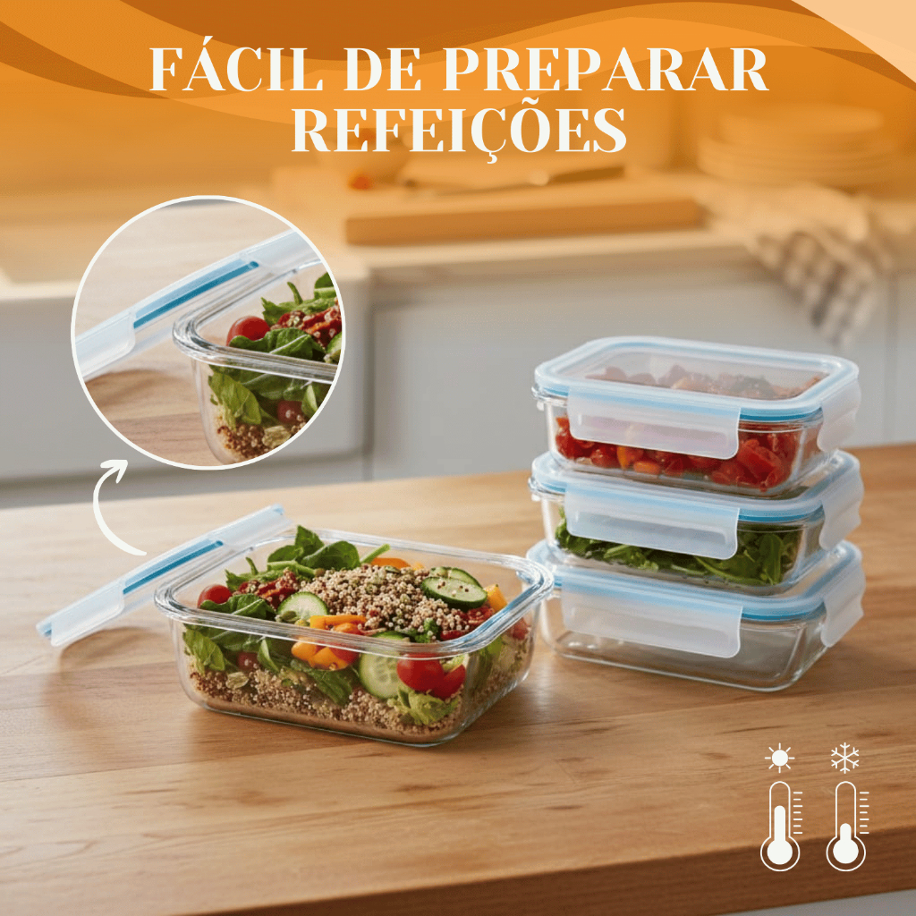 Kit Potes Herméticos Marmita de Vidro 630ml 1 a 5 Unidades - P/ Forno e Microondas