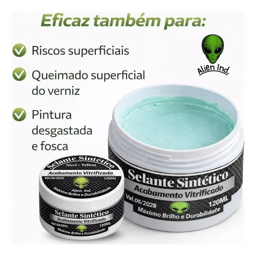 Cera Vitrificadora Alien Sintética Teflon + Sio2 - Automotiva Selante Pintura Hidro repelente Alien Cera