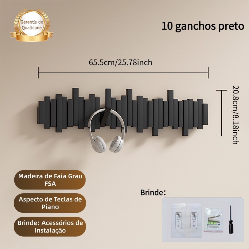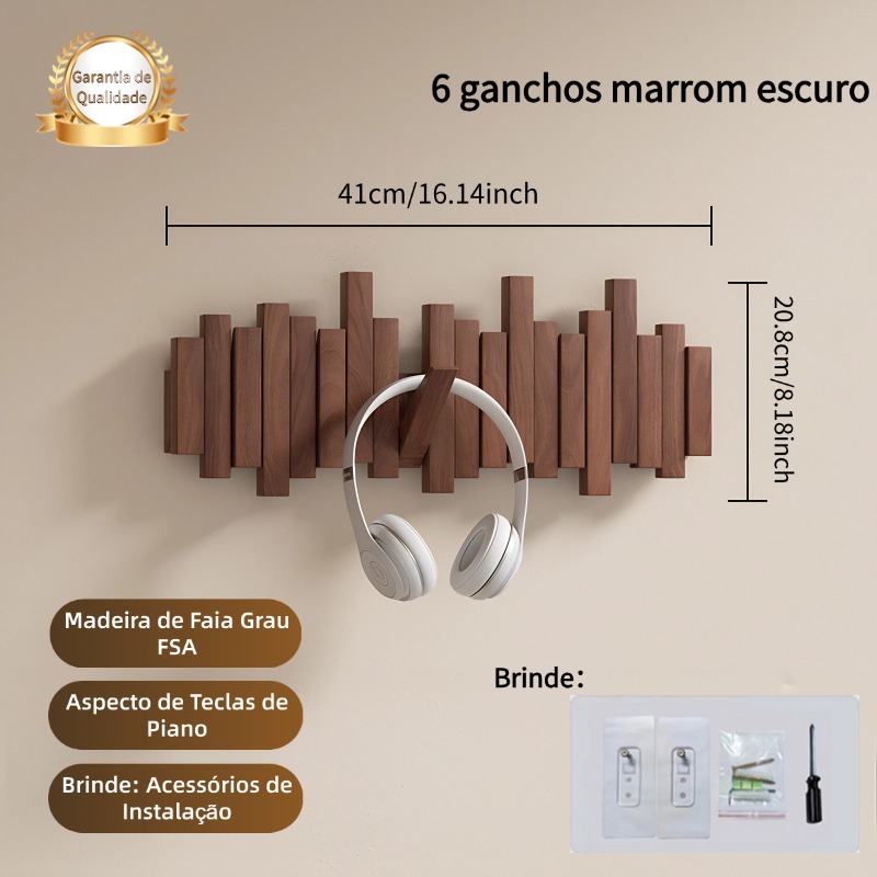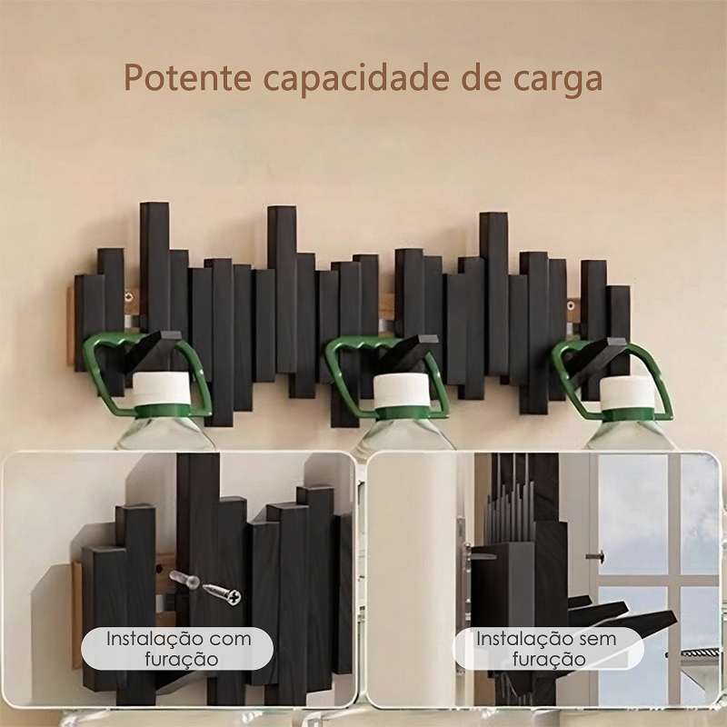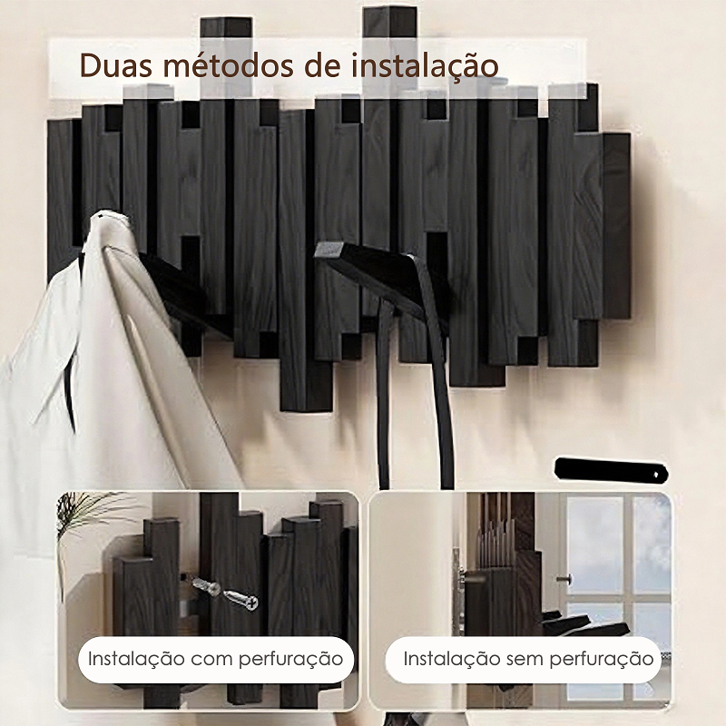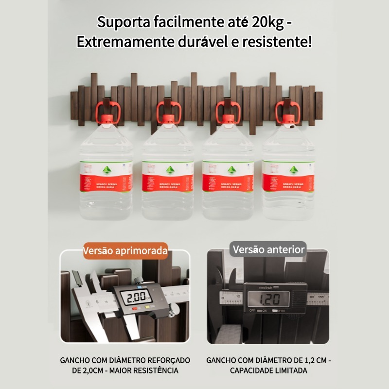 Cabideiro de Parede em Madeira Maciça - Estilo Minimalista Multifuncional com 6/8/10 Ganchos