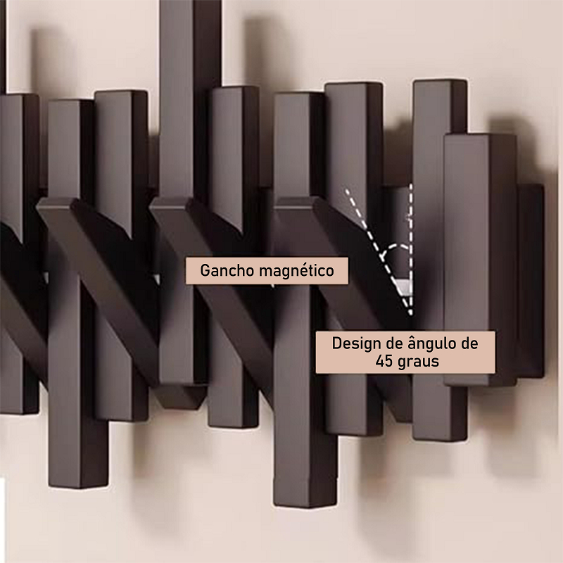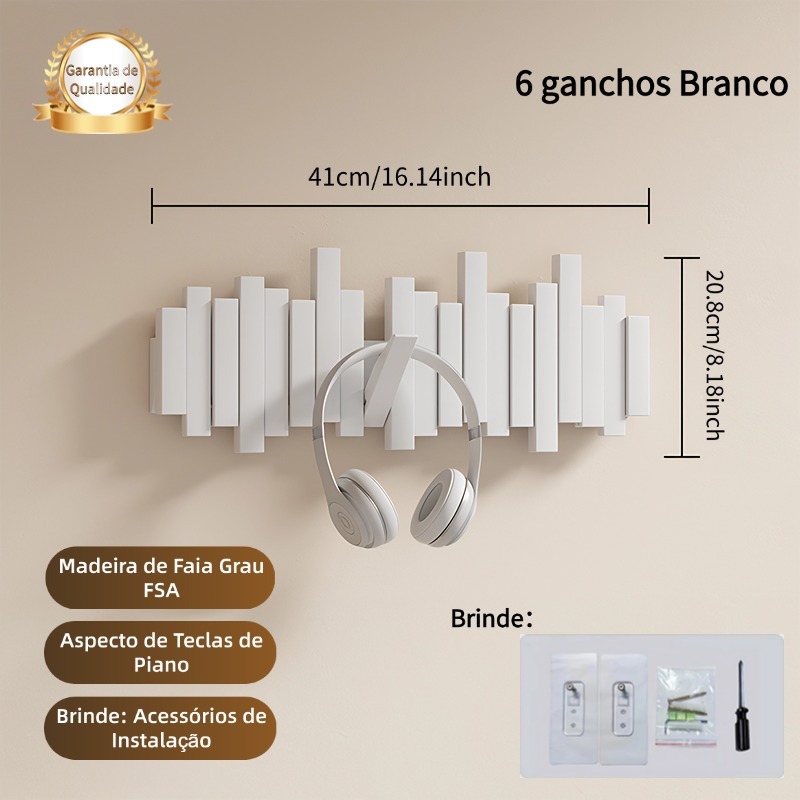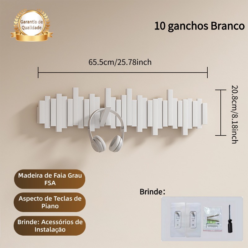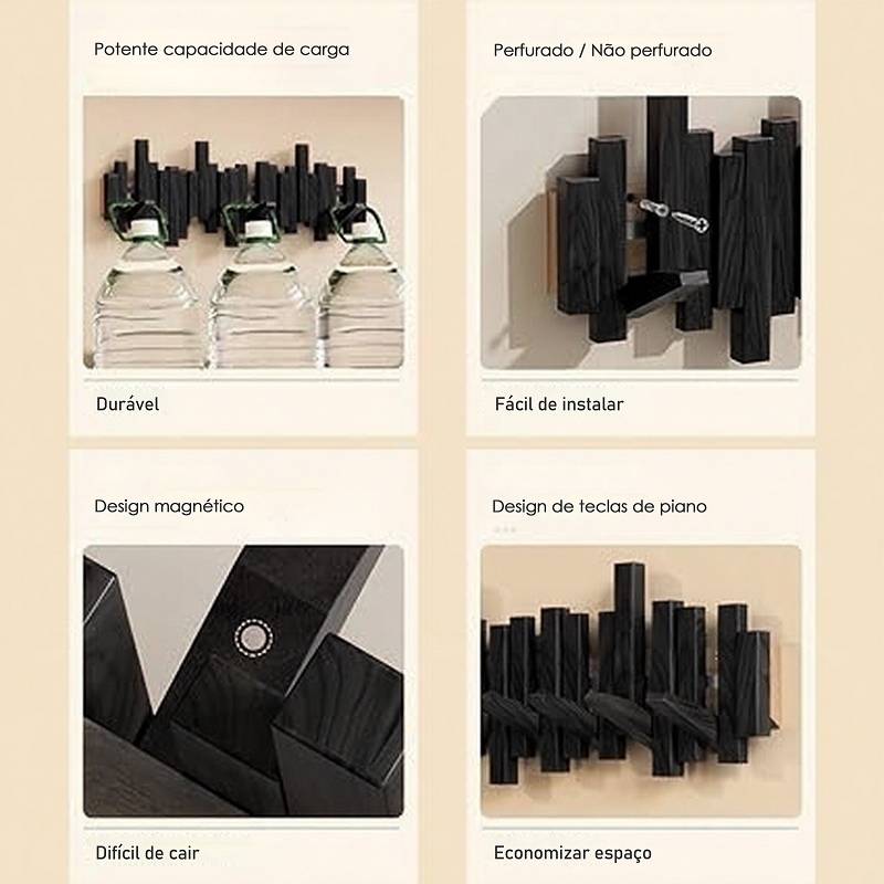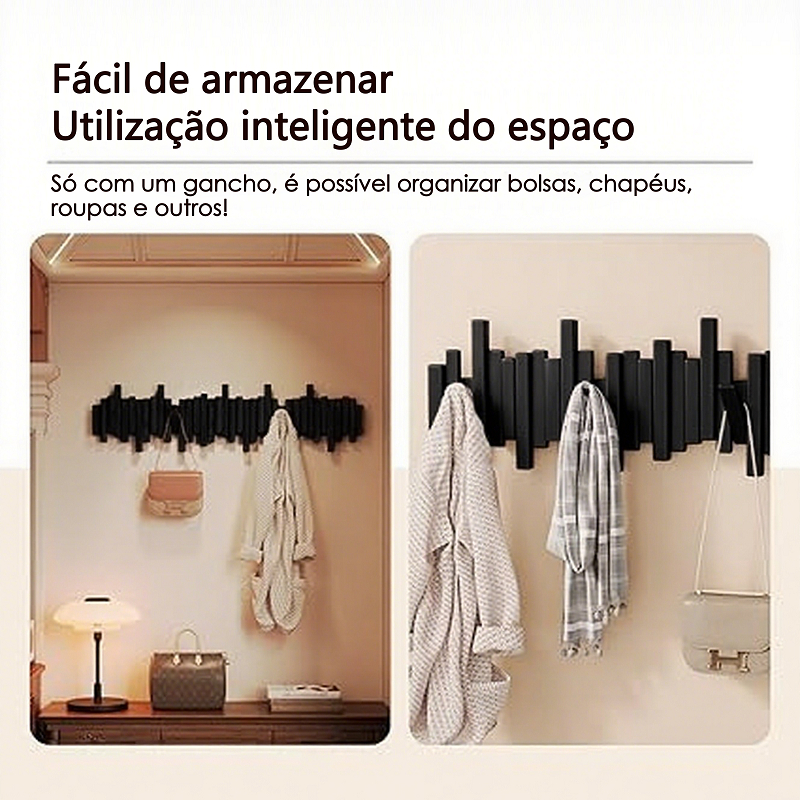 Cabideiro de Parede em Madeira Maciça - Estilo Minimalista Multifuncional com 6/8/10 Ganchos