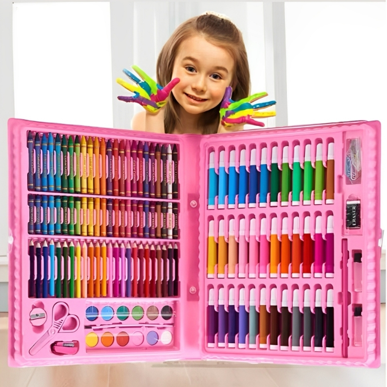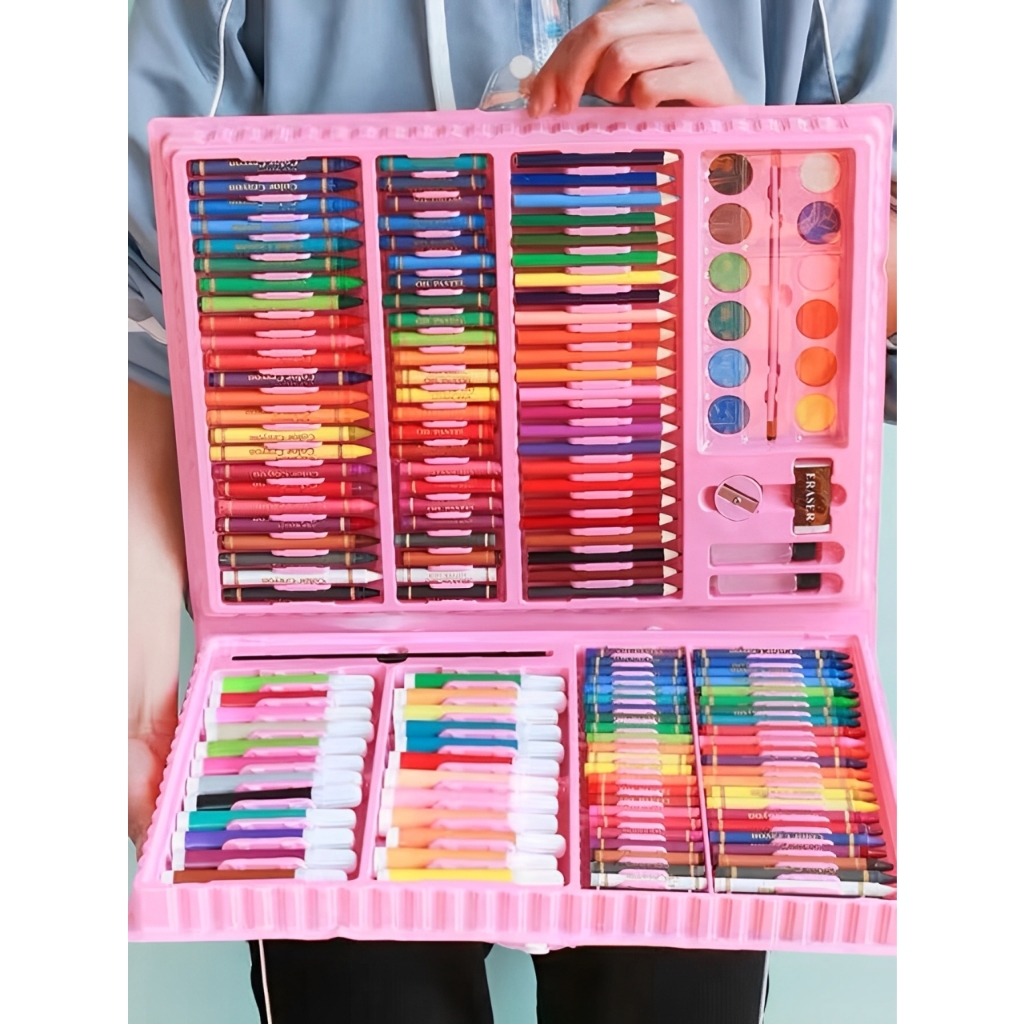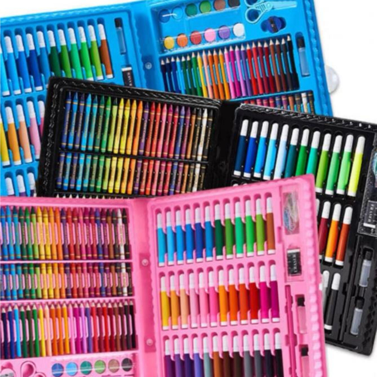 KIT Estojo pintura 24/48/68/86/150 peças Estojo Maleta Pintura Infantil Canetinhas Giz Lápis Cores