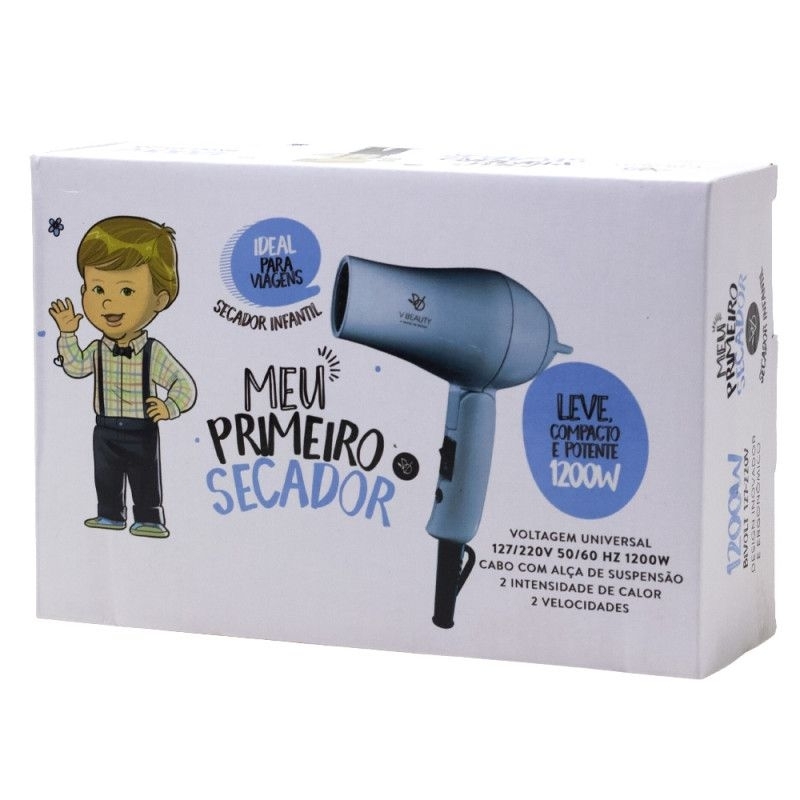 Mini Secador de Cabelo de viagem Vbeauty 1200W / 2 Velocidades / 2 Temperaturas / Bivolt - Blue