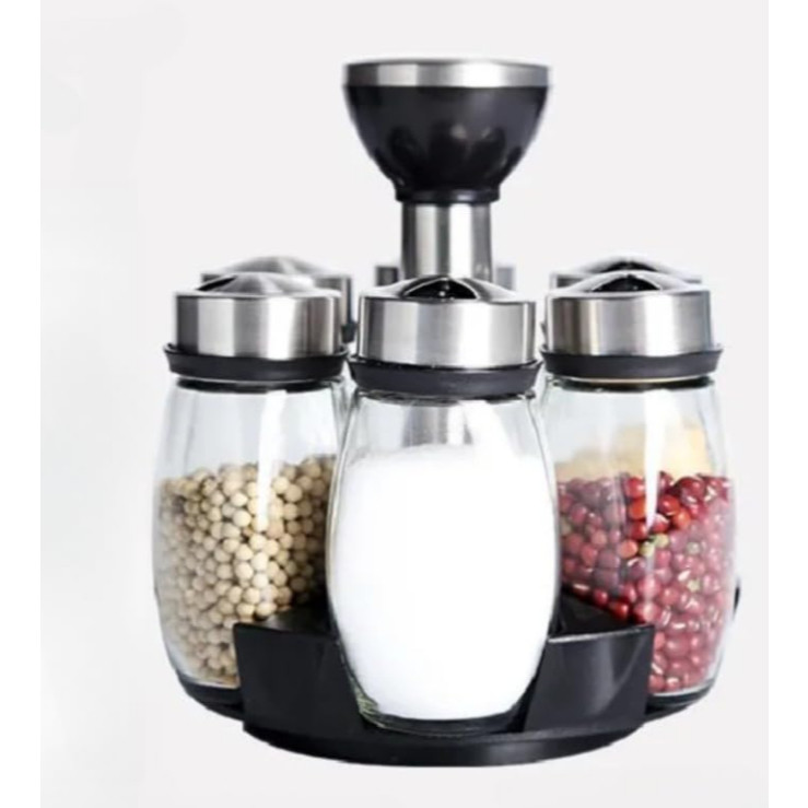 Porta Tempero Giratório Especiarias Inox Com 7 Peças Para Cozinha Pote de Vidro Para Temperos
