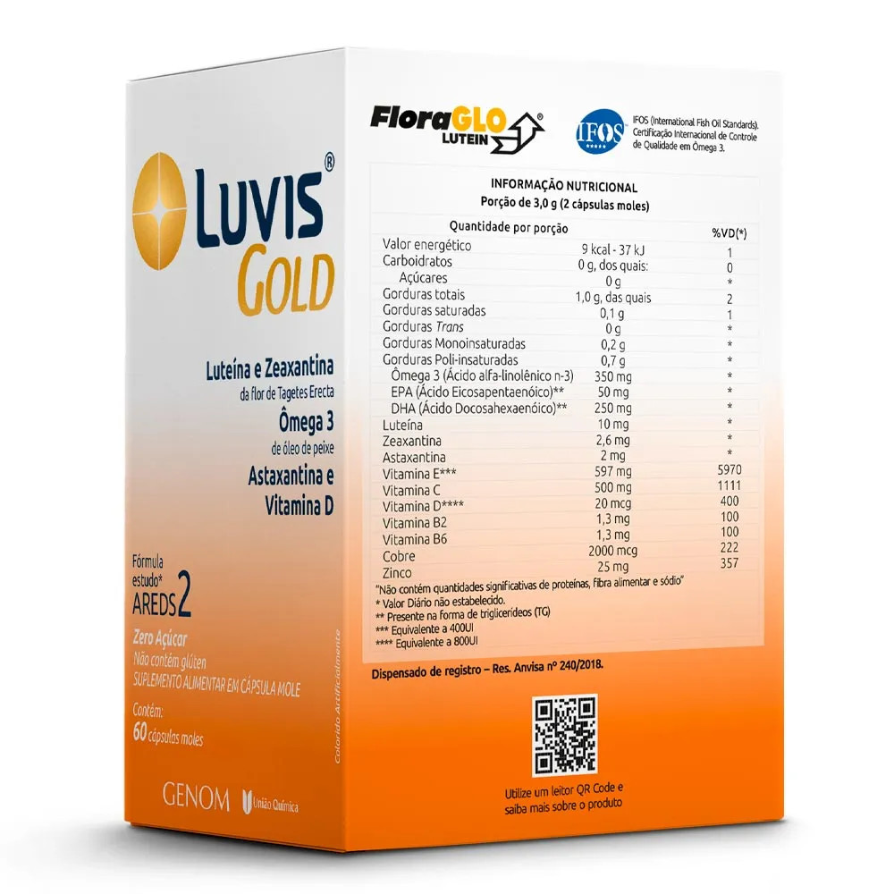Luvis Gold 60 cáps + 30 Grátis | Luteína + Zeaxantina + Ômega 3 | Saúde dos Olhos e Antioxidante