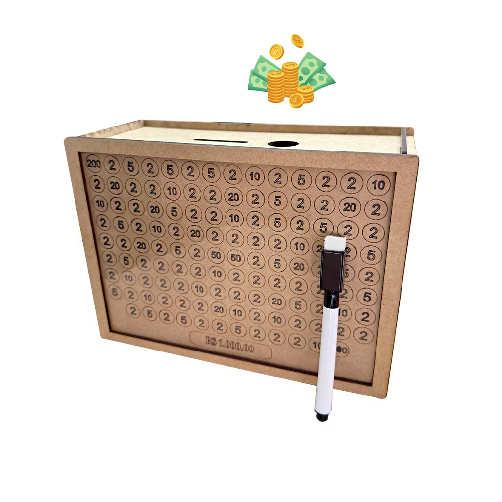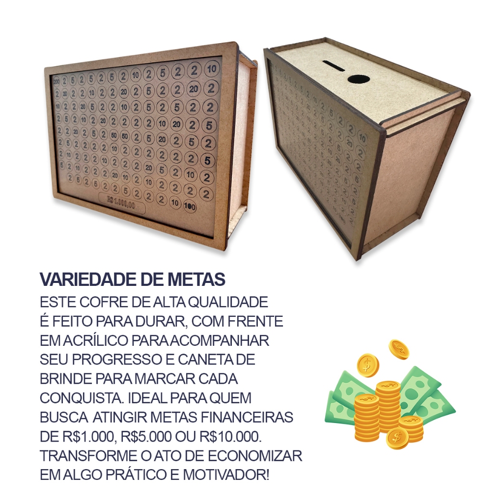 Cofre MDF Cru p/ Personalizar ou Adesivado | Cofrinho Desafio das Moedas e Notas – Oferta Exclusiva