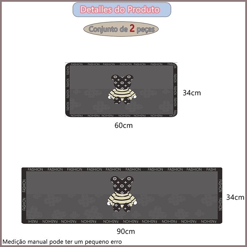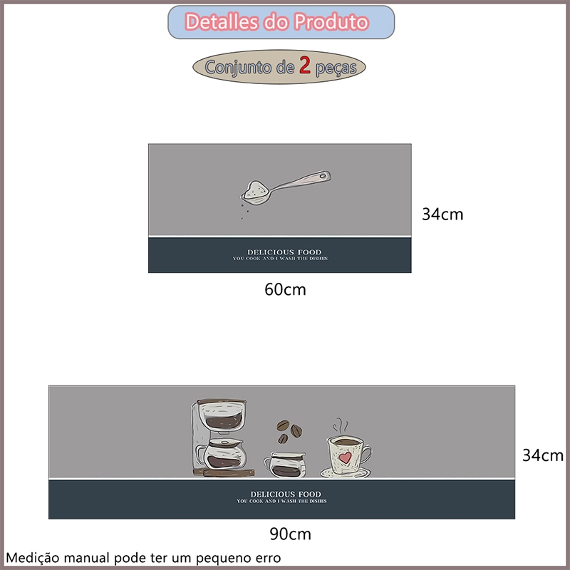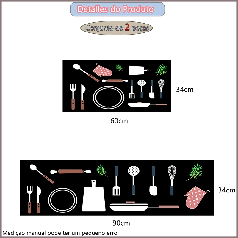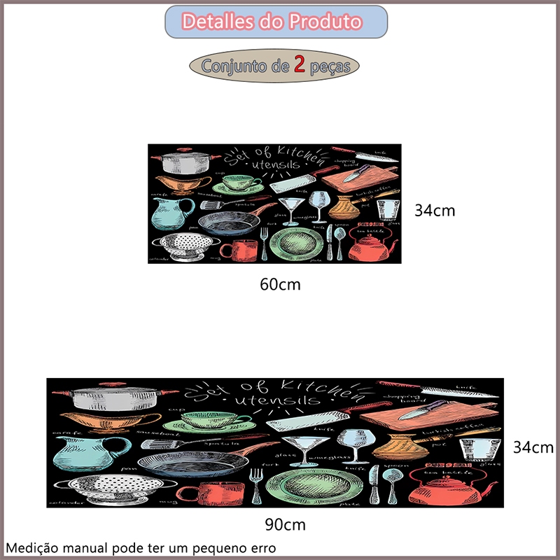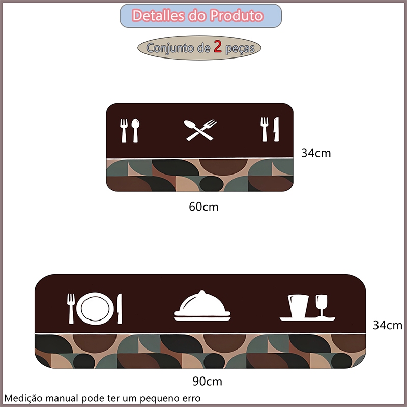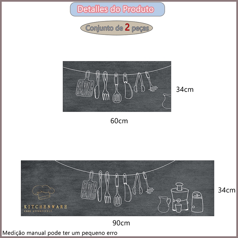 Kit 3 Tapetes de Cozinha - Borracha Antiderrapante, Super Absorvente e Secagem Rápida 90x34 cm, 60x34 cm