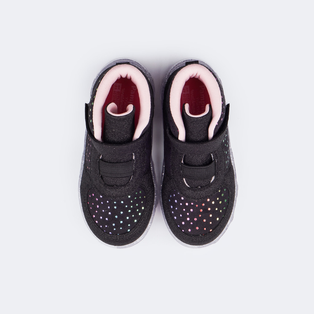 Tênis de Led Infantil Feminino Aveludado Preto Pampili