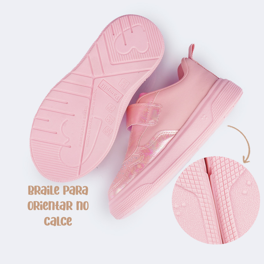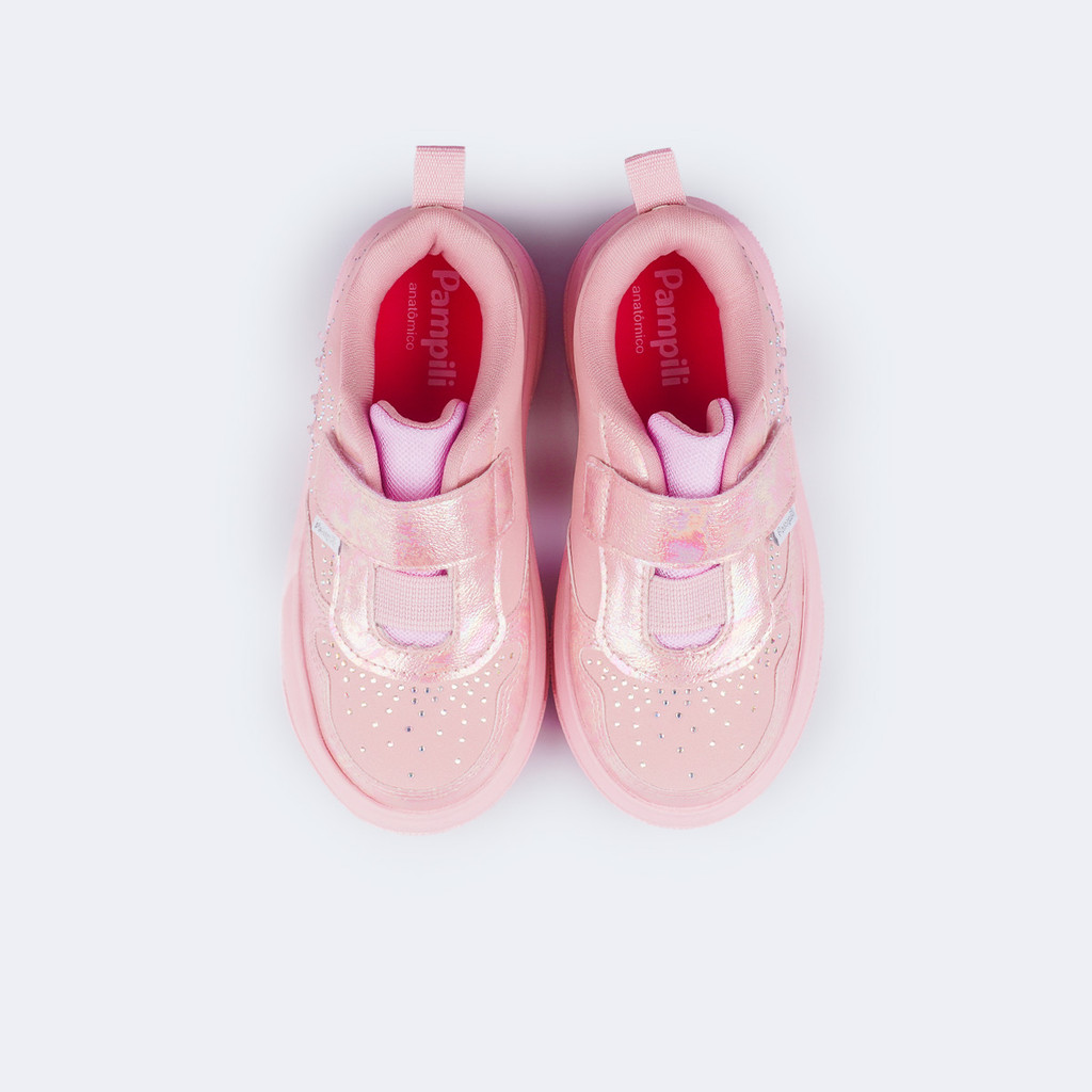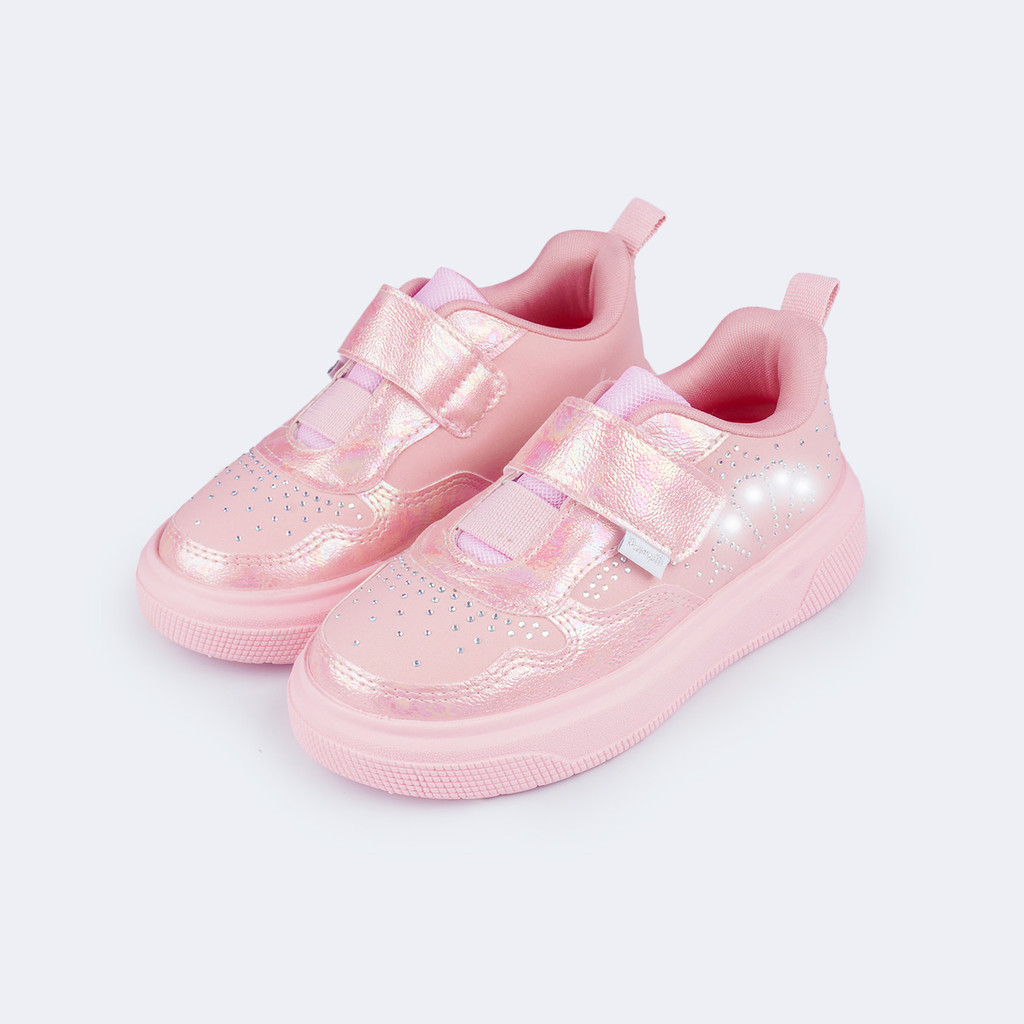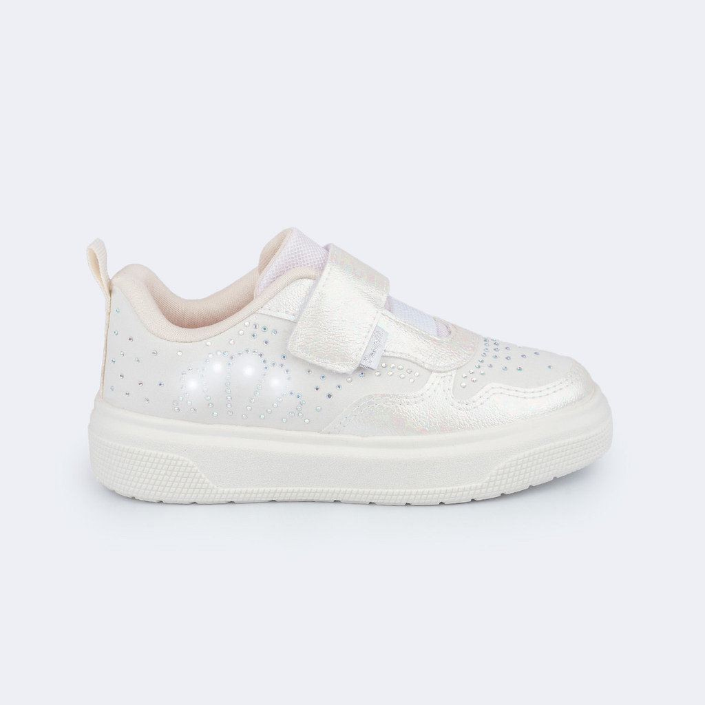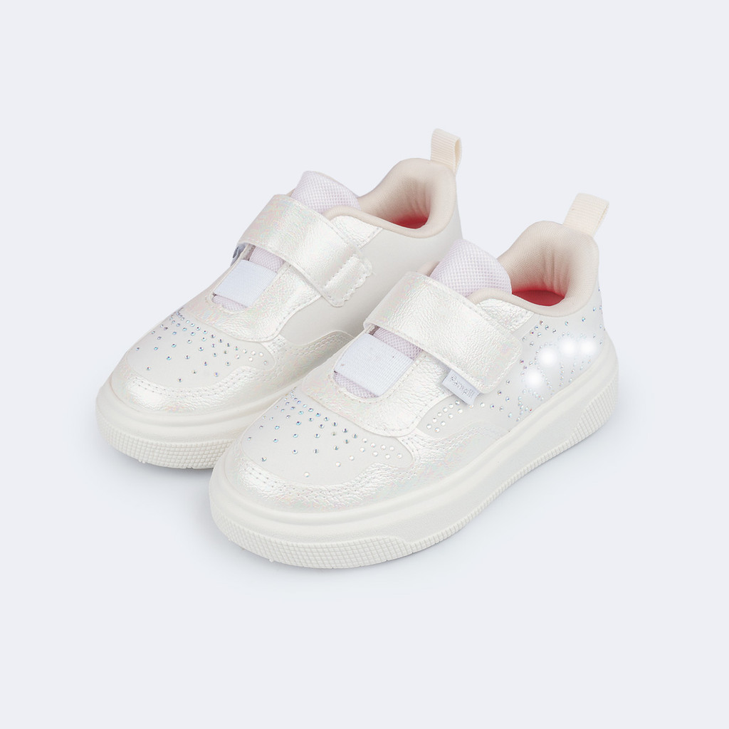 Tênis de Led Infantil Perolado Concha Strass Pampili