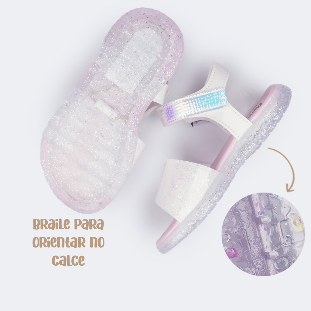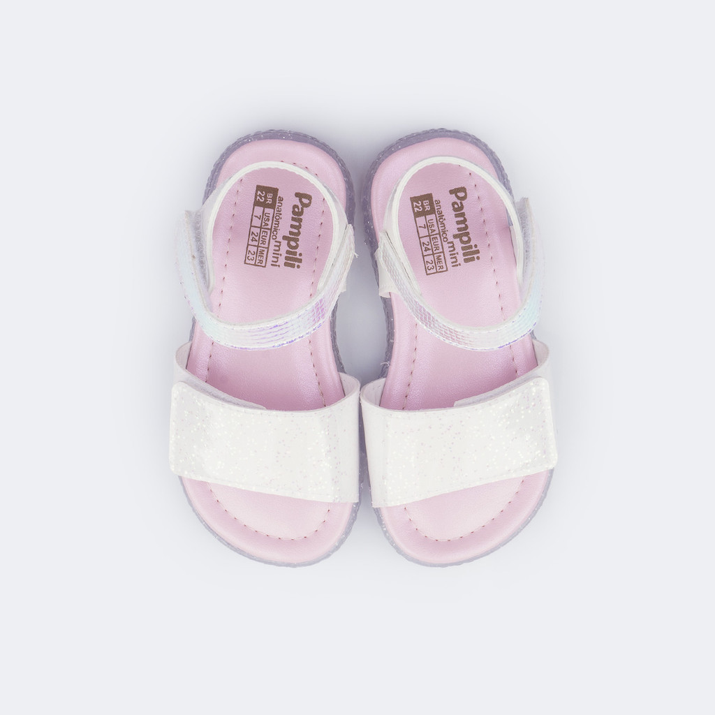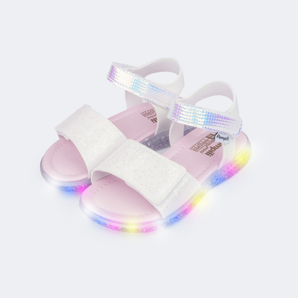 Sandália de Led Infantil Pampili Mini Holográfica Branca Pampili