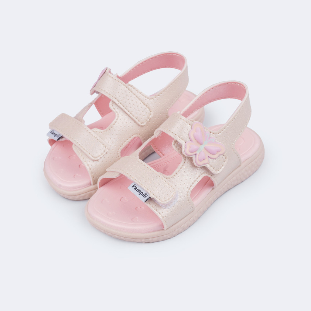 Sandália Papete Infantil Borboleta Rosa Claro Pampili