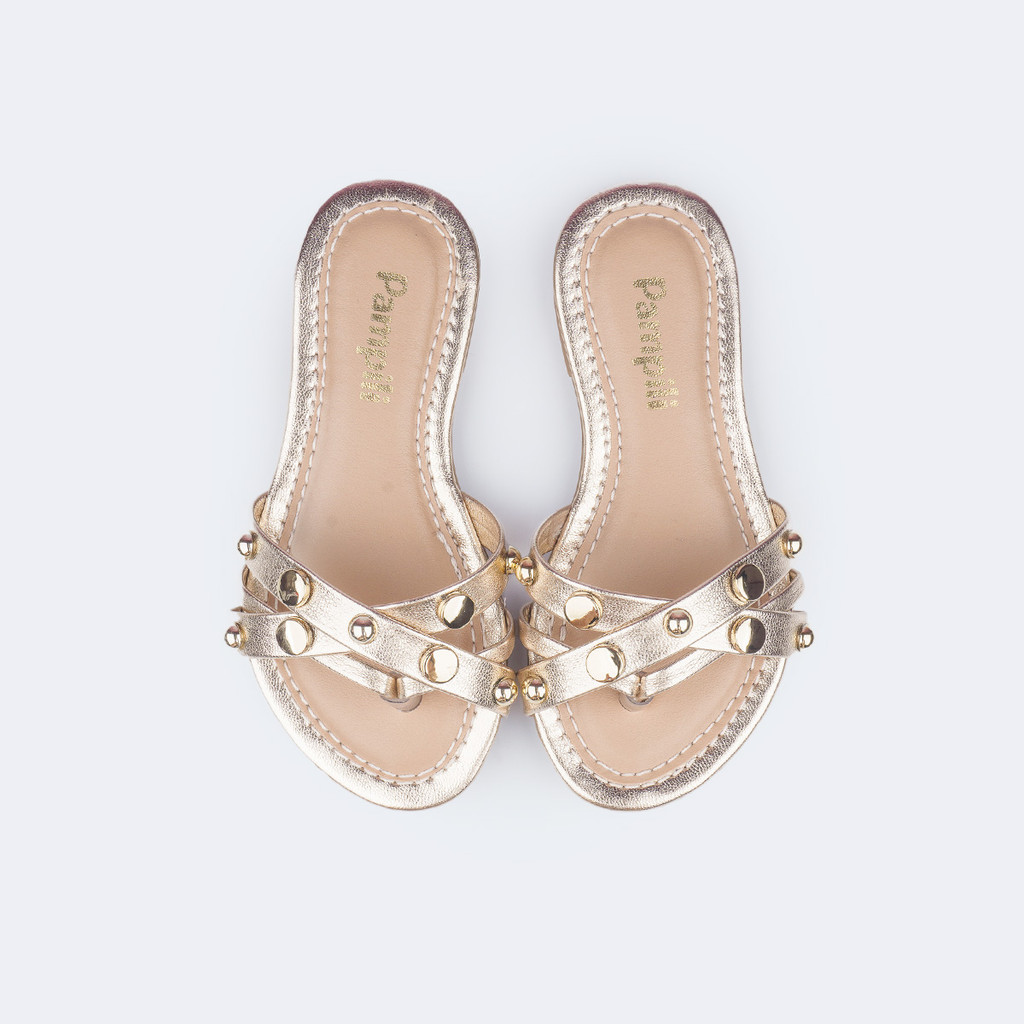 Sandália Rasteira Infantil Tiras Cruzadas Com Tachas Pampili