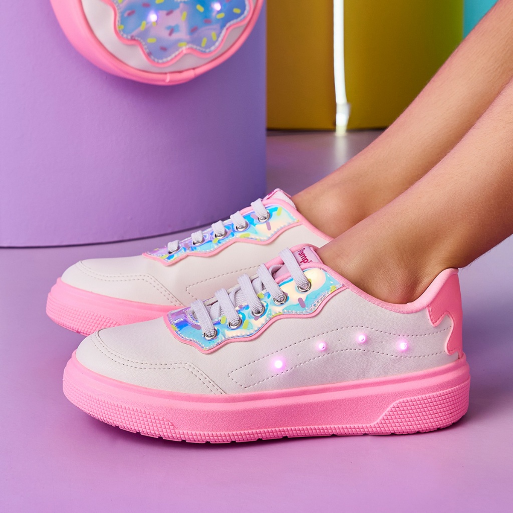 Tênis Infantil Led Docinho Rosa Branco Pampili