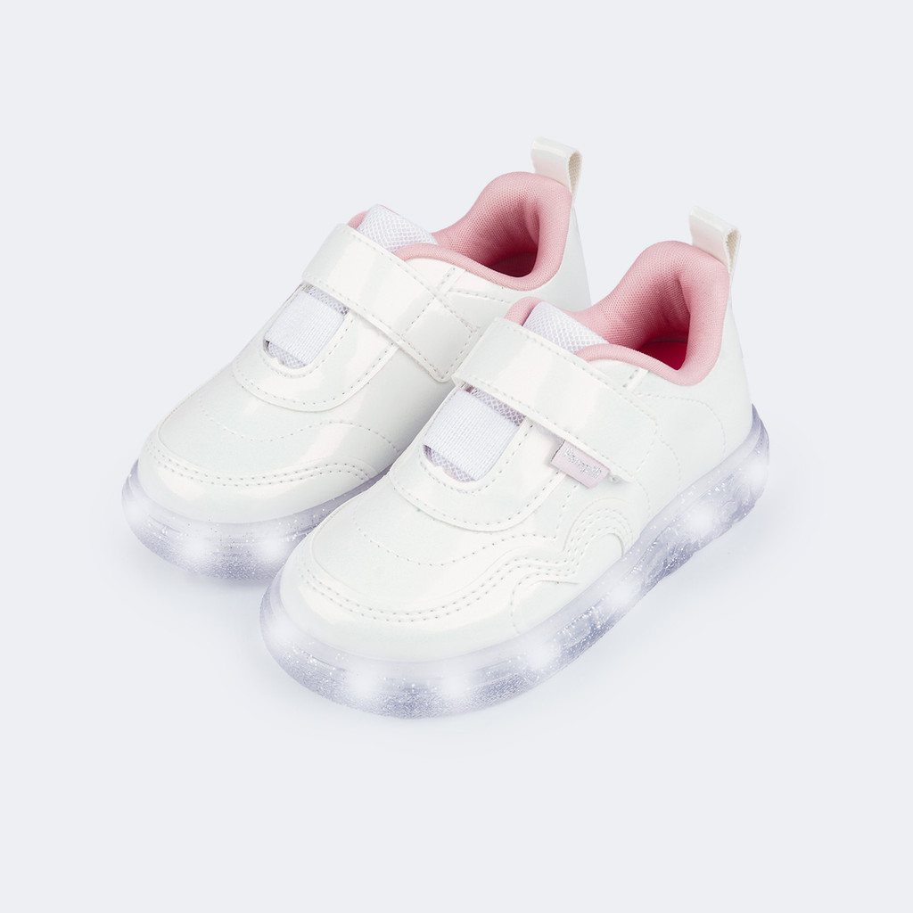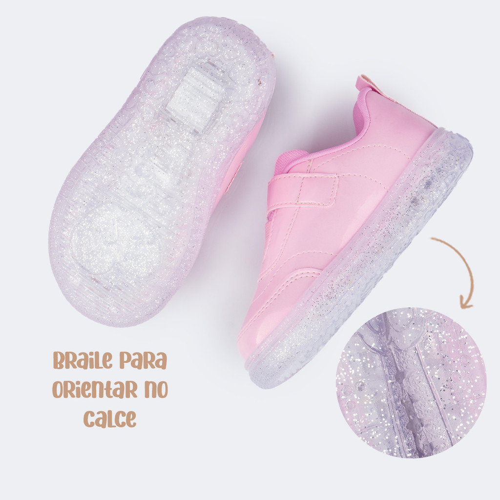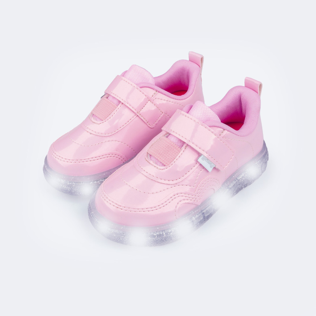 Tênis de Led Infantil Coração Verniz Pampili