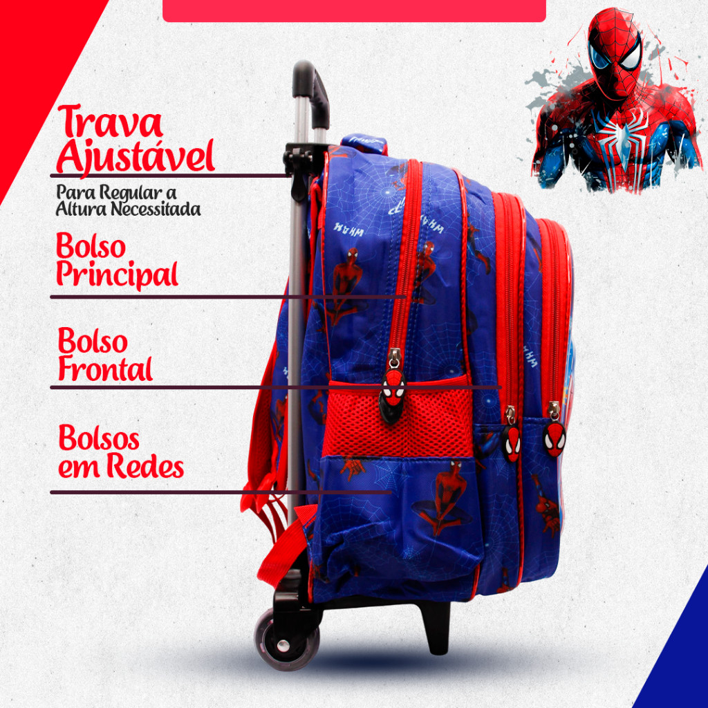 Mochila Escolar 3D Homem Aranha com rodinhas Infantil Ou Mochila Sem Rodinhas do Homem Aranha