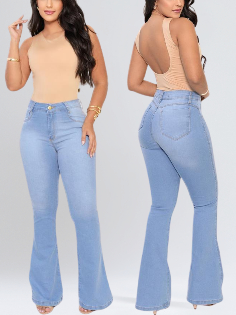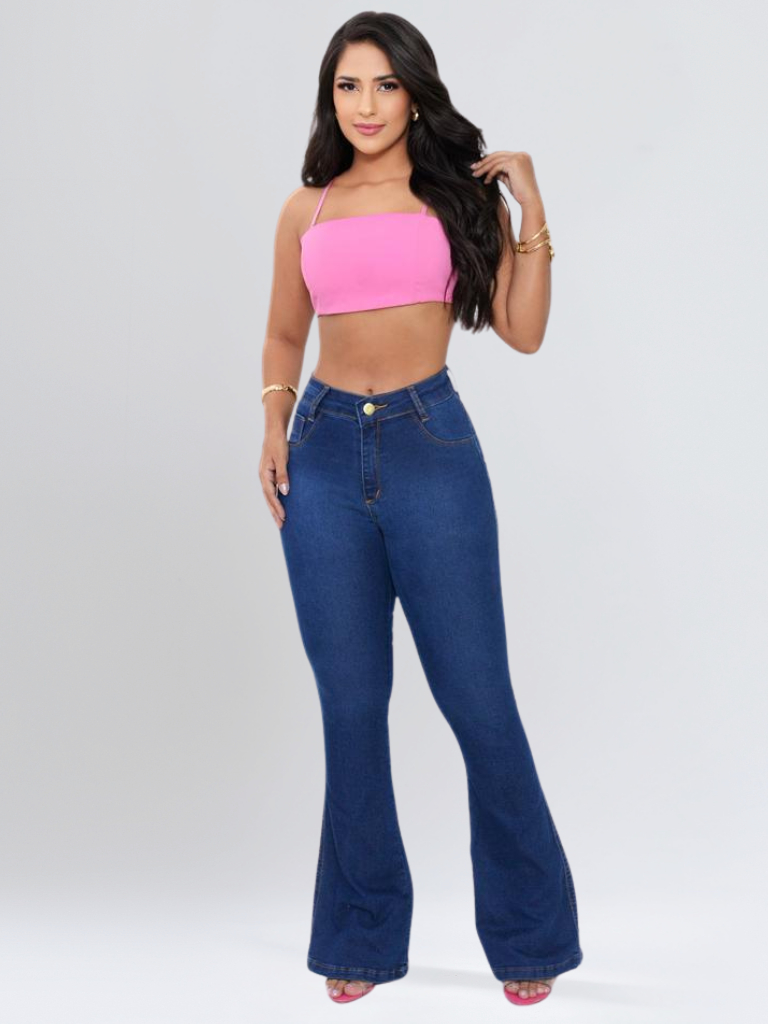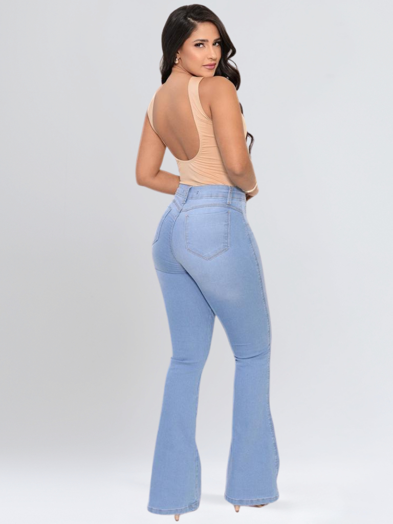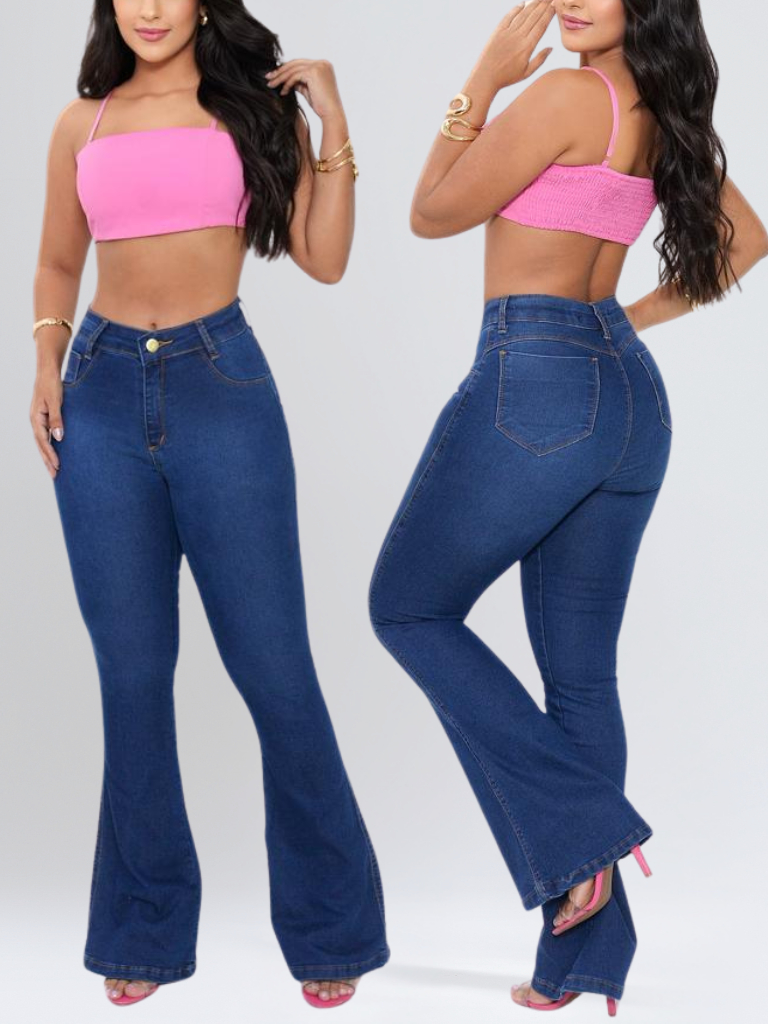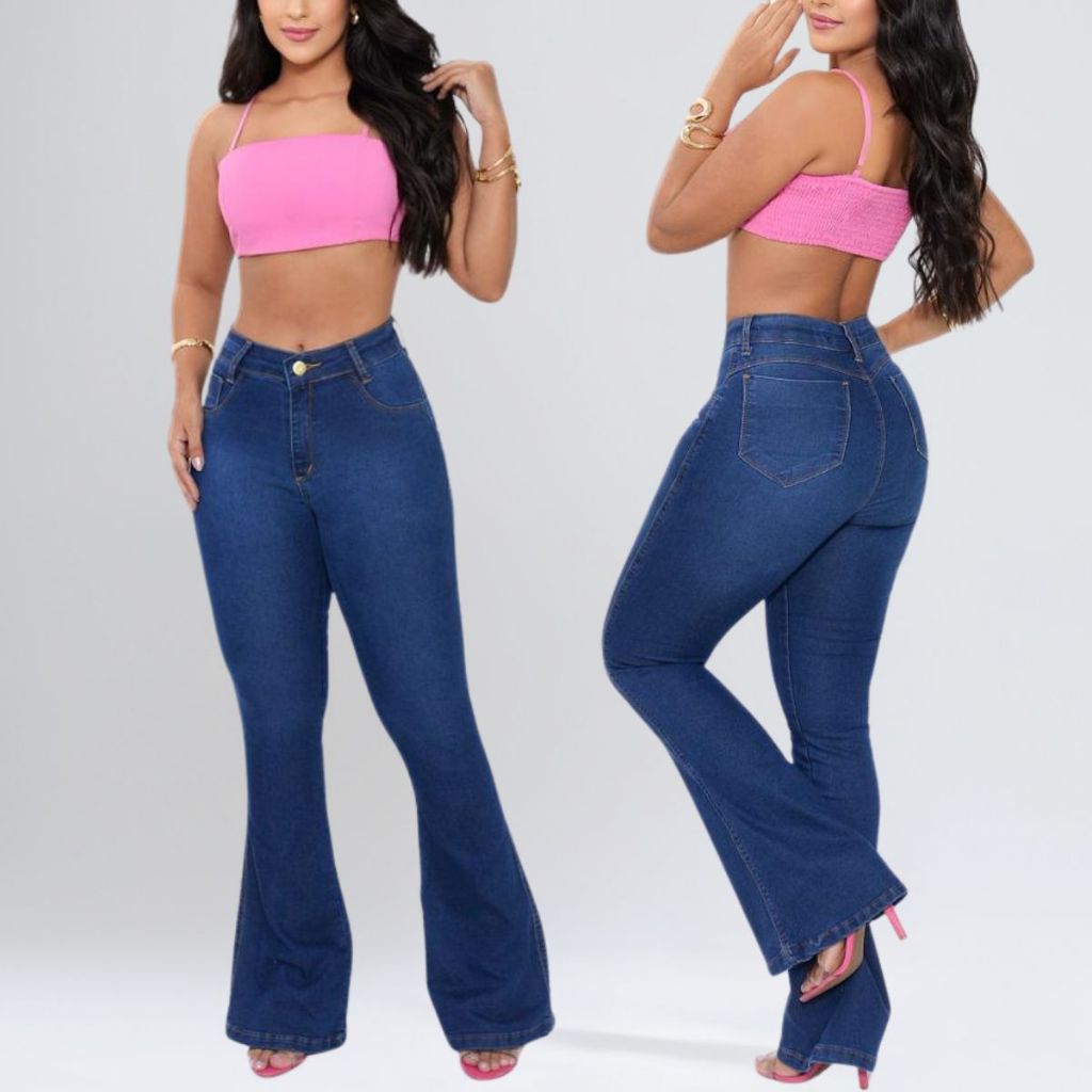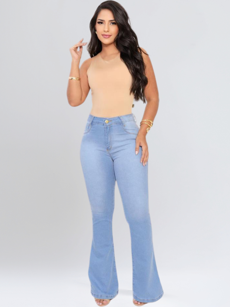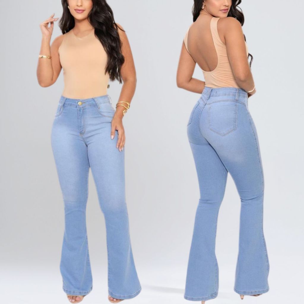 Kit 2 Calça Flare Jeans Feminina Com Elastano Boca de Sino Cintura Alta Elegante Cos Alto Clara Escura