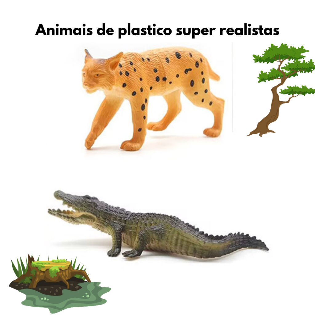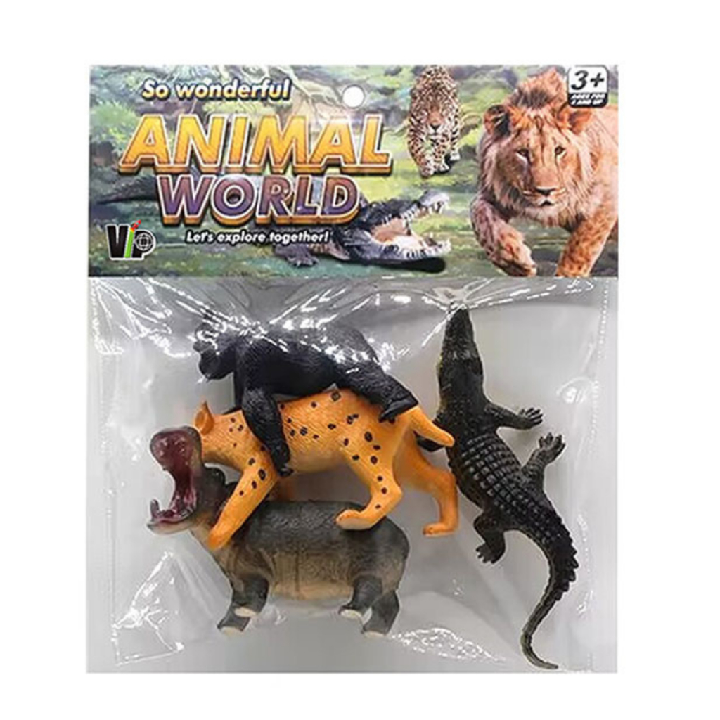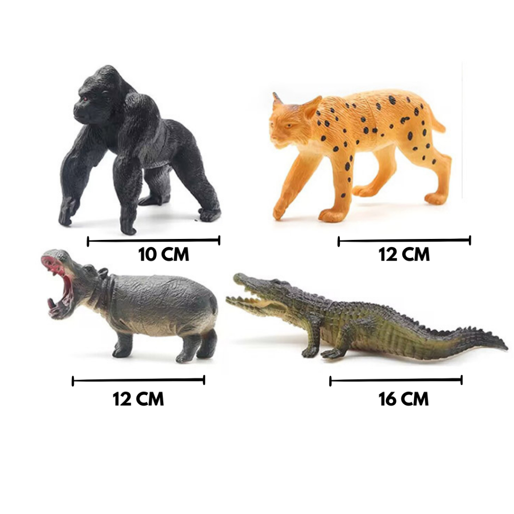 Kit de animais Brinquedo Gorila Onça Hipopótamo Jacaré Plástico Brinquedo