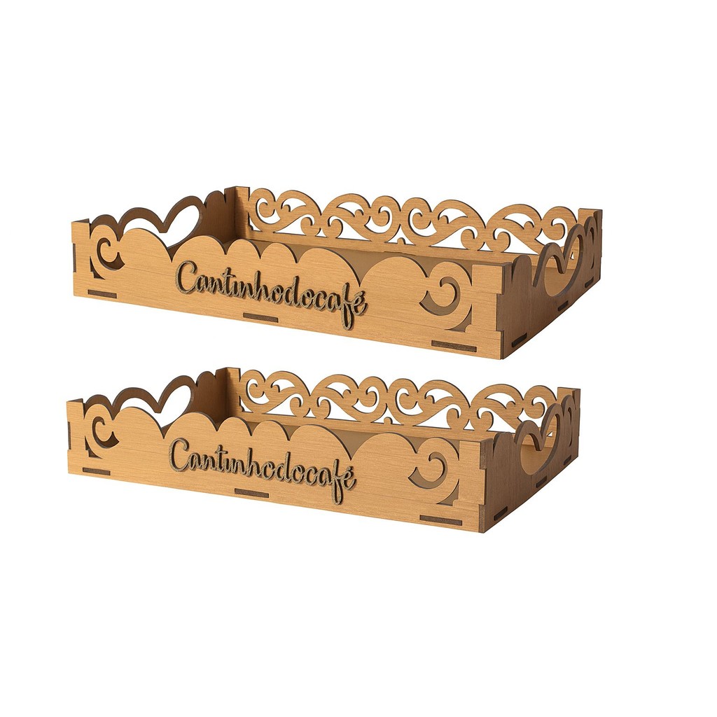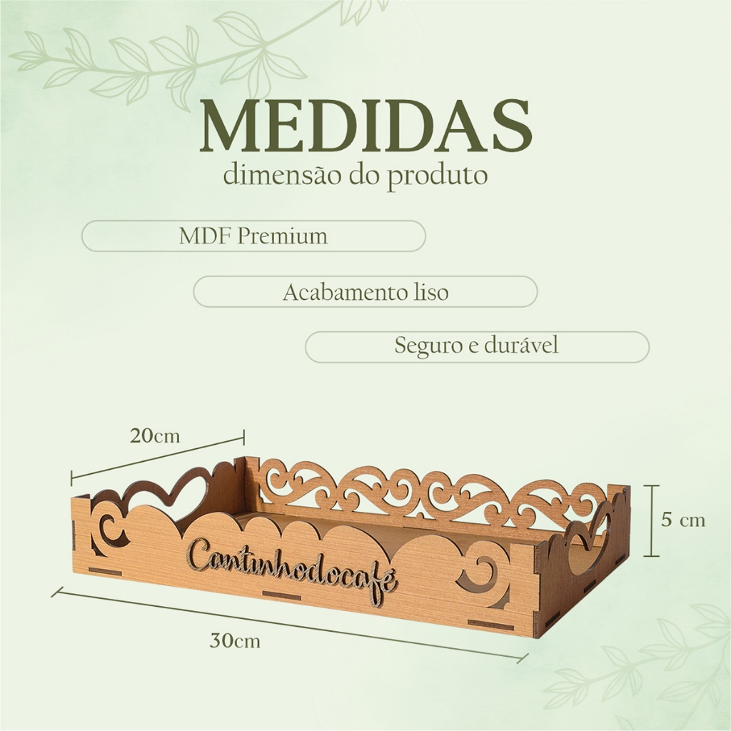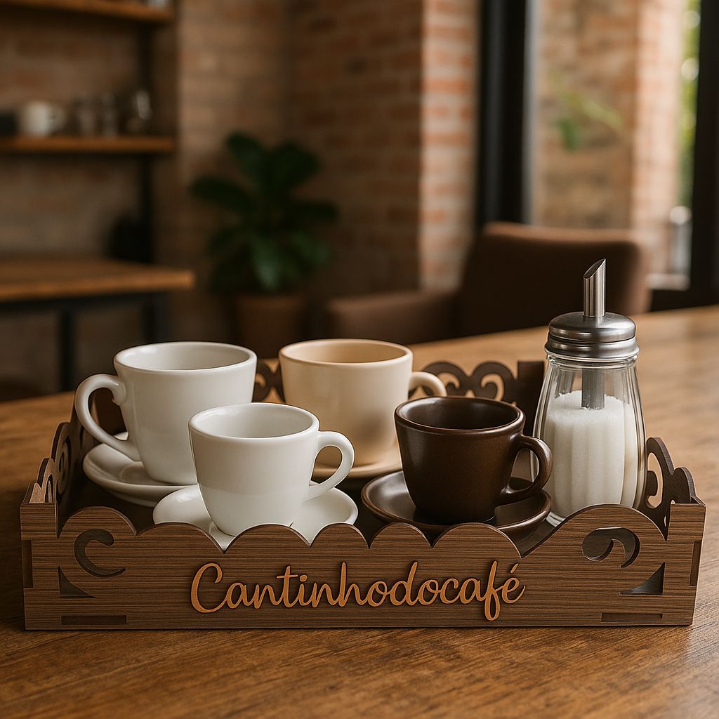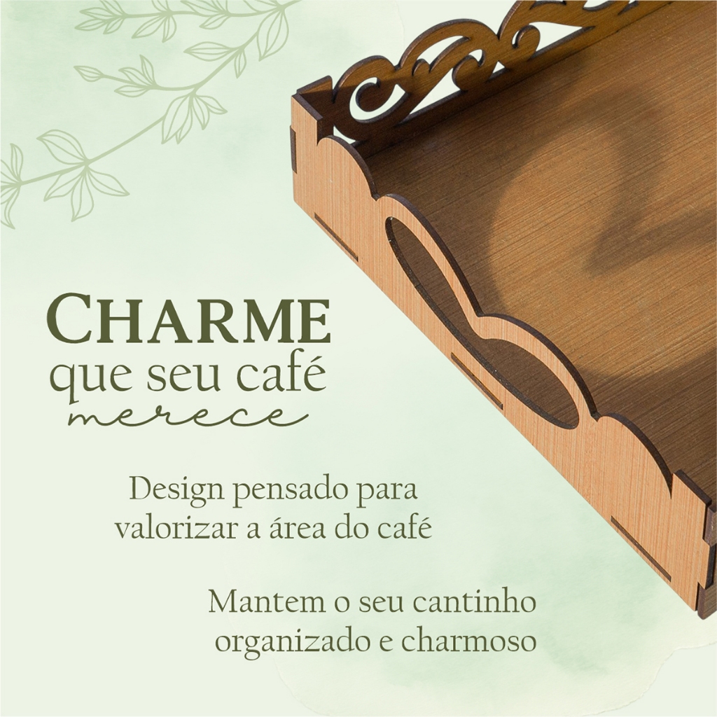 Bandeja MDF Cantinho do Café Decorativa 26x16cm Organização Xícaras Cápsulas Açúcar Nogueira Tabaco