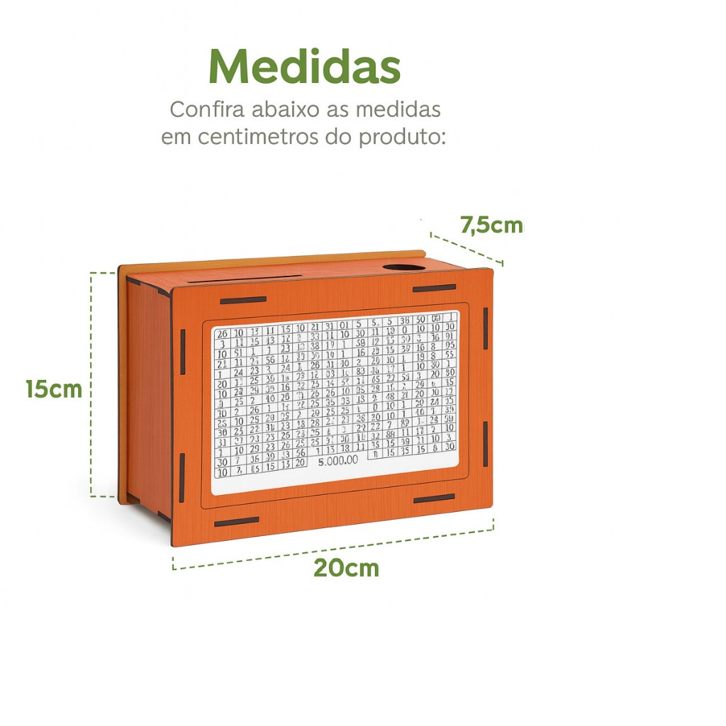 Cofre Desafio do Dinheiro MDF Caixa Cofrinho Meta Viagem Reserva Emergência Poupança