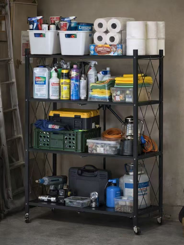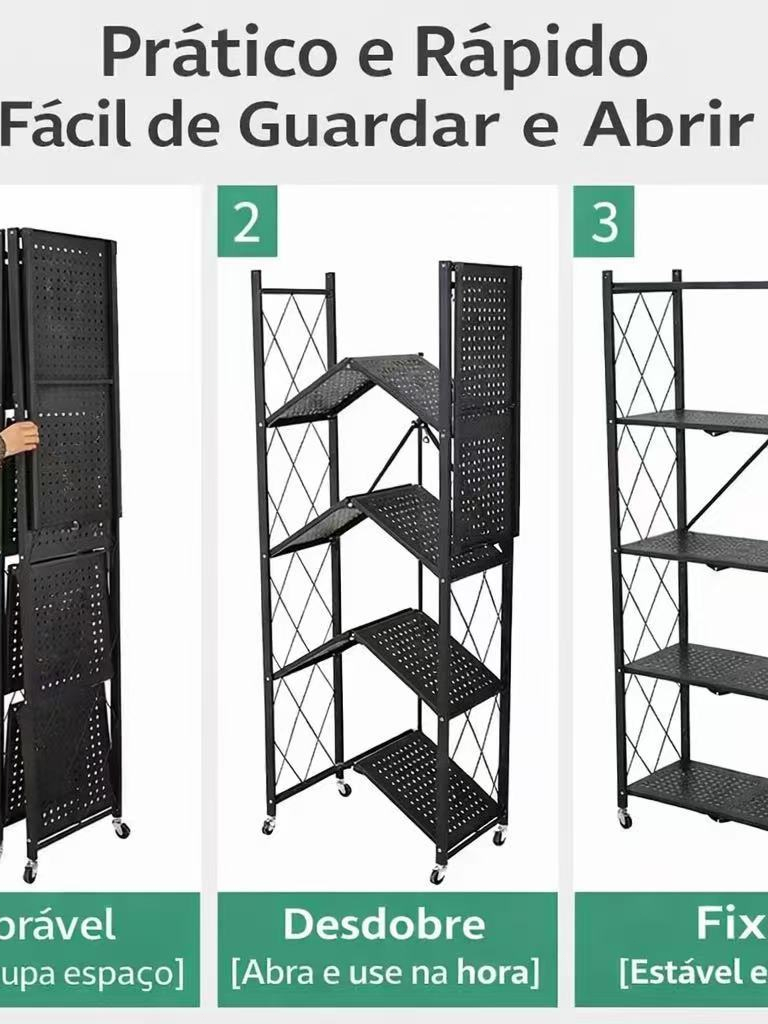 Estante Dobrável Em Aço Industrial Prateleira Multiuso 4 Andares Com Rodinhas