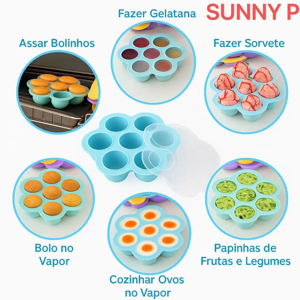 Porta Pote Papinha Recipiente Fundo De Silicone 7 Divisórias Bandeja Congeladora De Alimentos Para Bebês Mordida De OVO