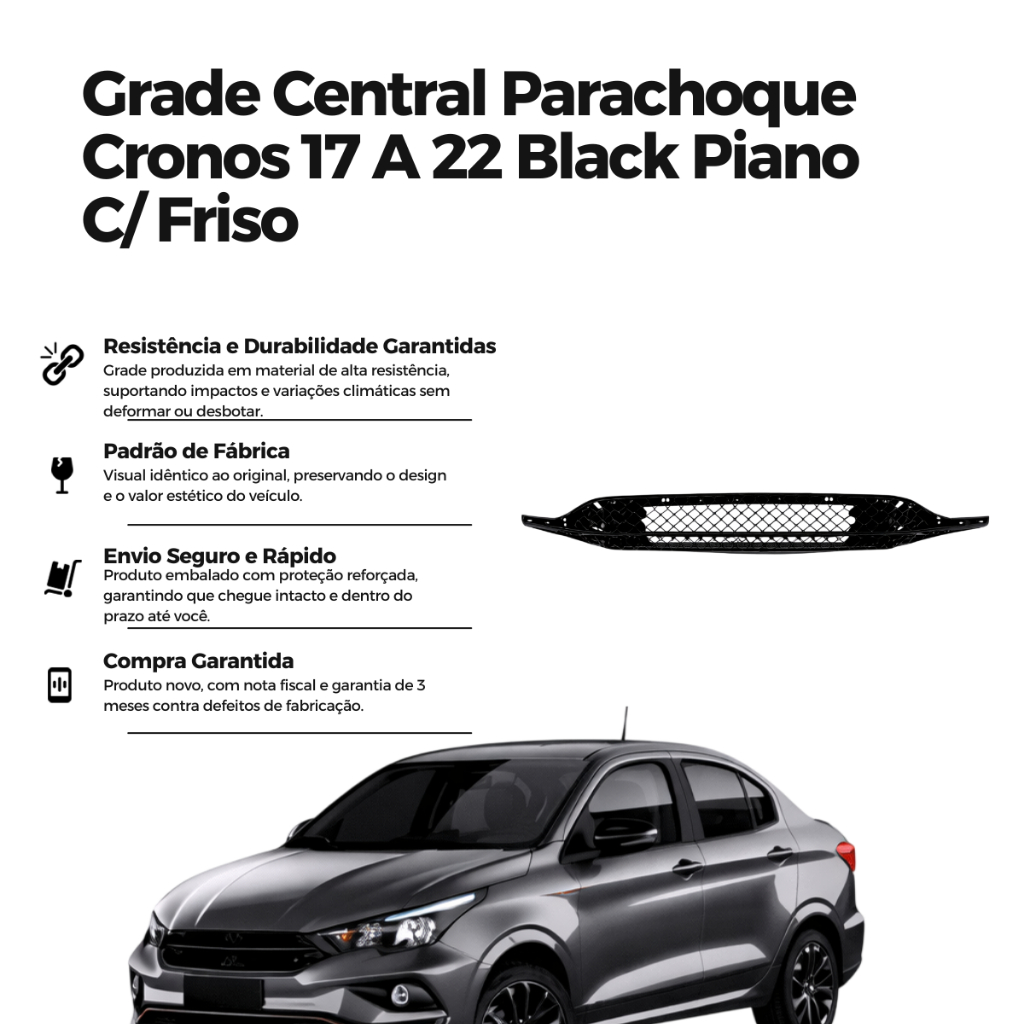 Grade Central Parachoque Cronos 17 A 22 Black Piano C/ Friso