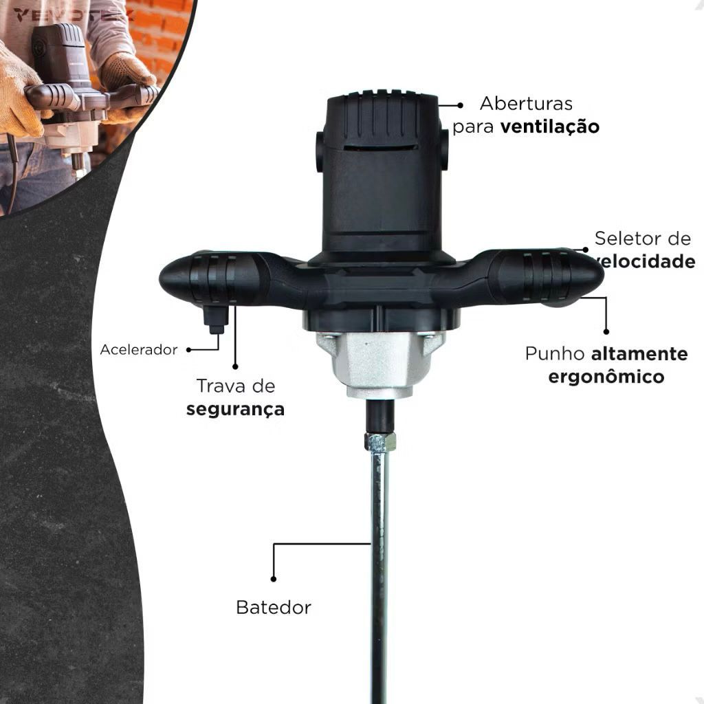 Misturador Elétrico Profissional 1500W 110V para Argamassa Tinta Cimento Gesso – Alta Potência