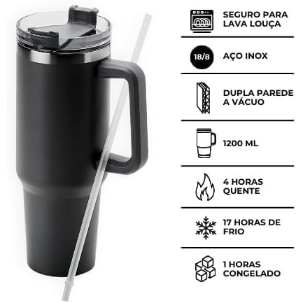Copo Térmico com Tampa 1200 Ml Caneca Térmica Com Canudo e Tampa Grande Inox Parede Dupla (Roxo) - YODHE