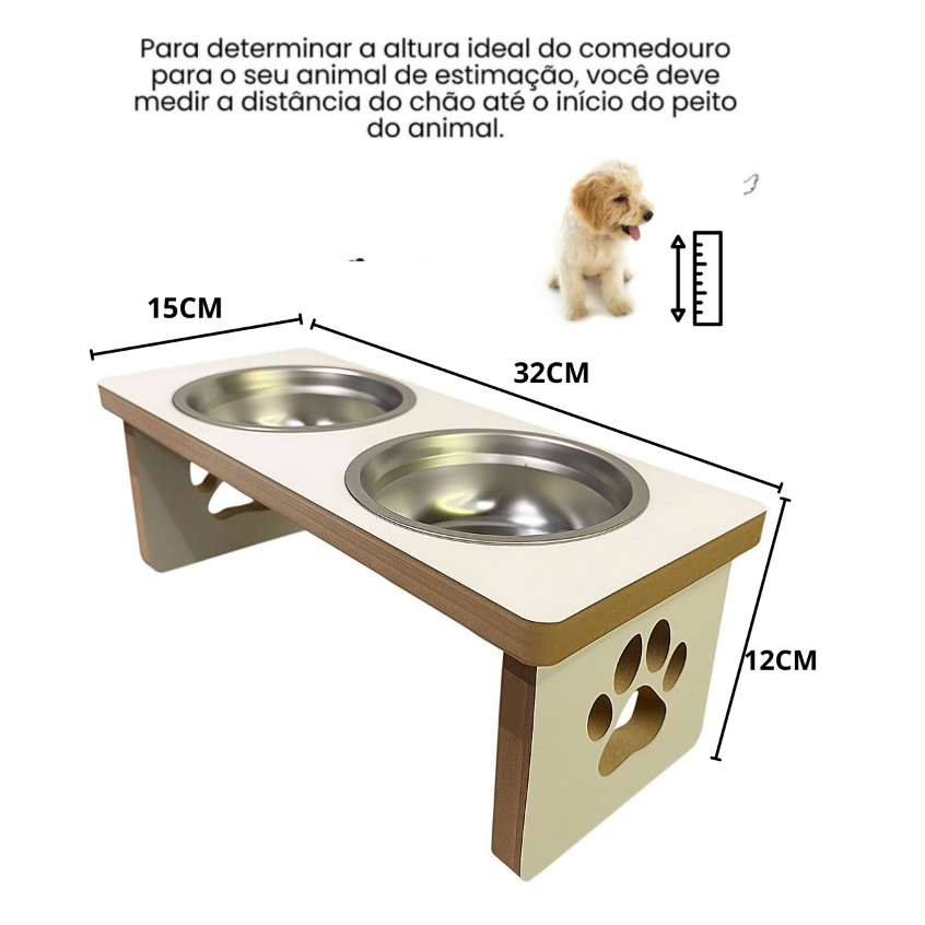 Comedouro Duplo Madeira Mdf para Cães