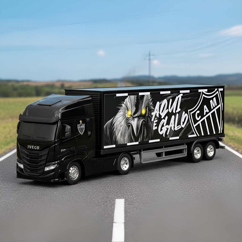 Miniatura Réplica Caminhão Brinquedo Iveco S-way Toco Baú Time Futebol Atlético Mineiro Galo Oficial 1:30