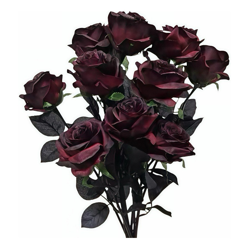 Rosa Artificial Preta com Detalhes em Vermelho – Decoração Halloween – Monte Seu Buquê