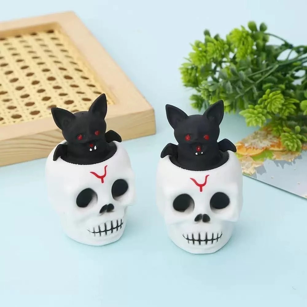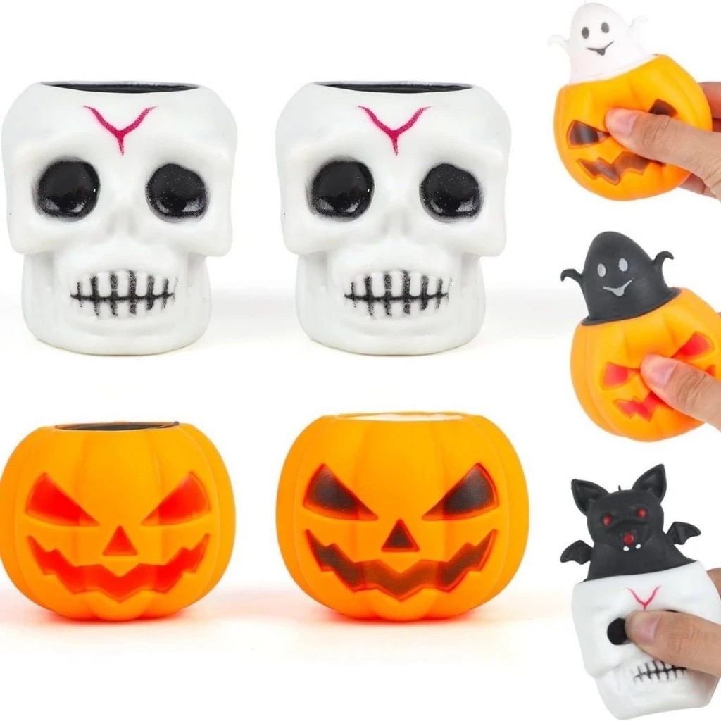 KIT 2 Brinquedo Apertavel Susto Abobora e Caveira Halloween Festas Rebound para Decoração