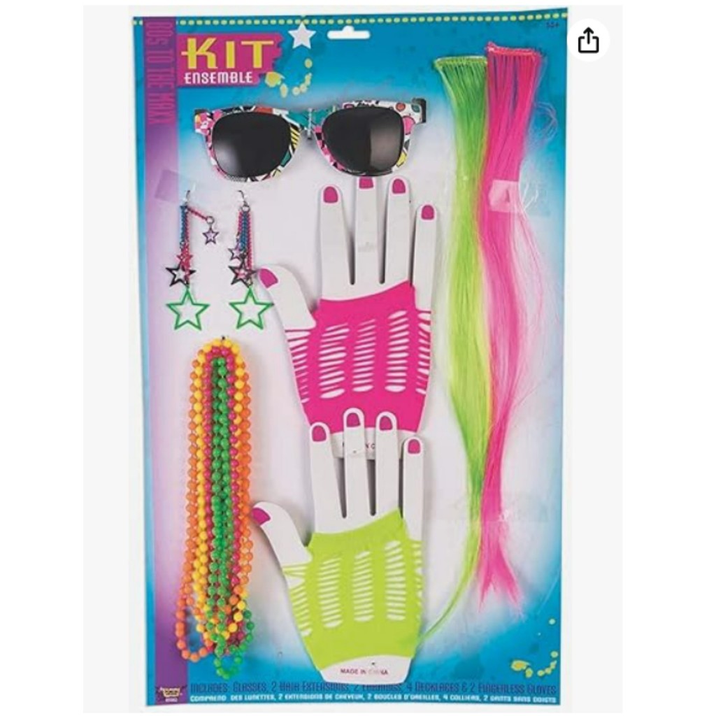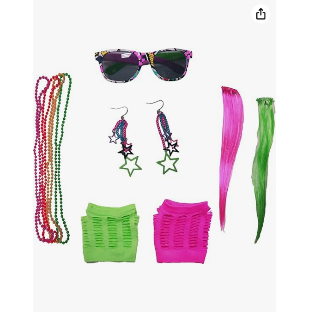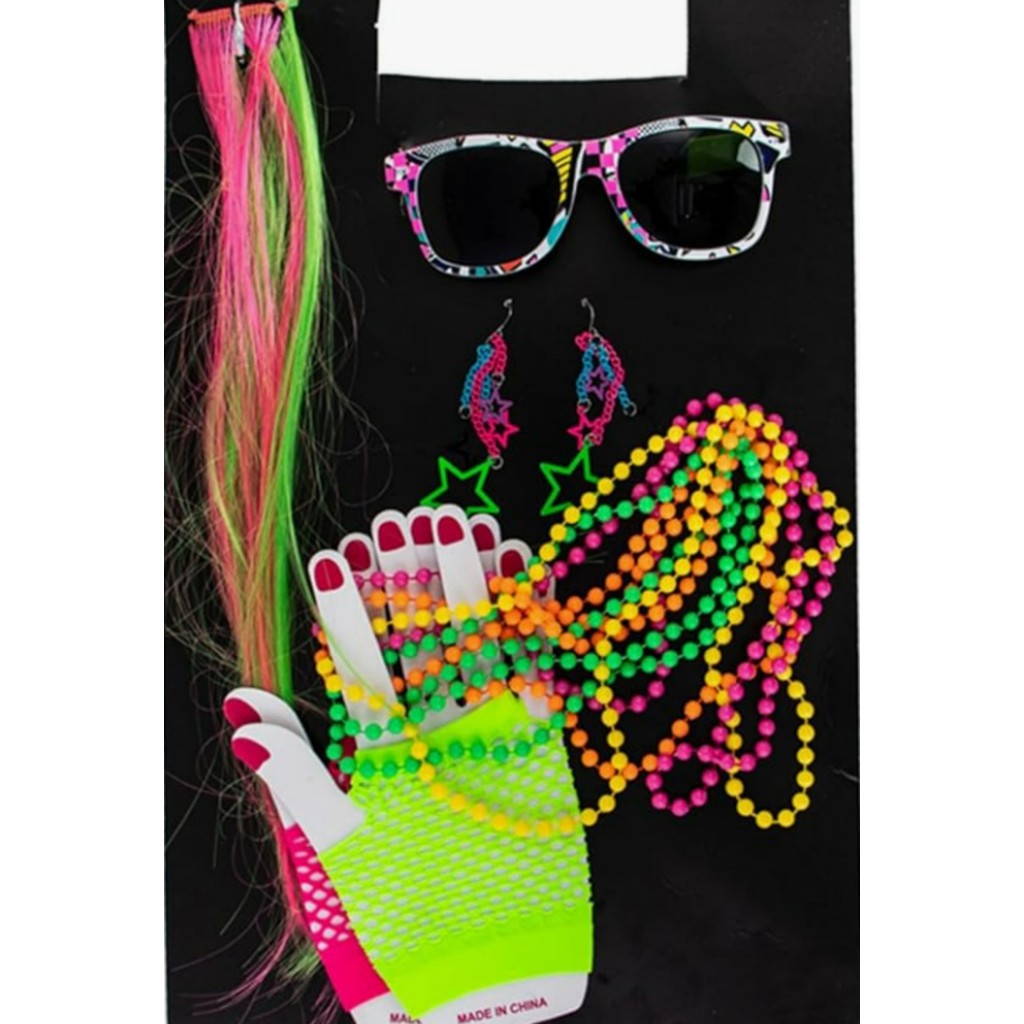 Acessórios para fantasia neon dos anos 80 feminina década, rock para fantasia de Halloween