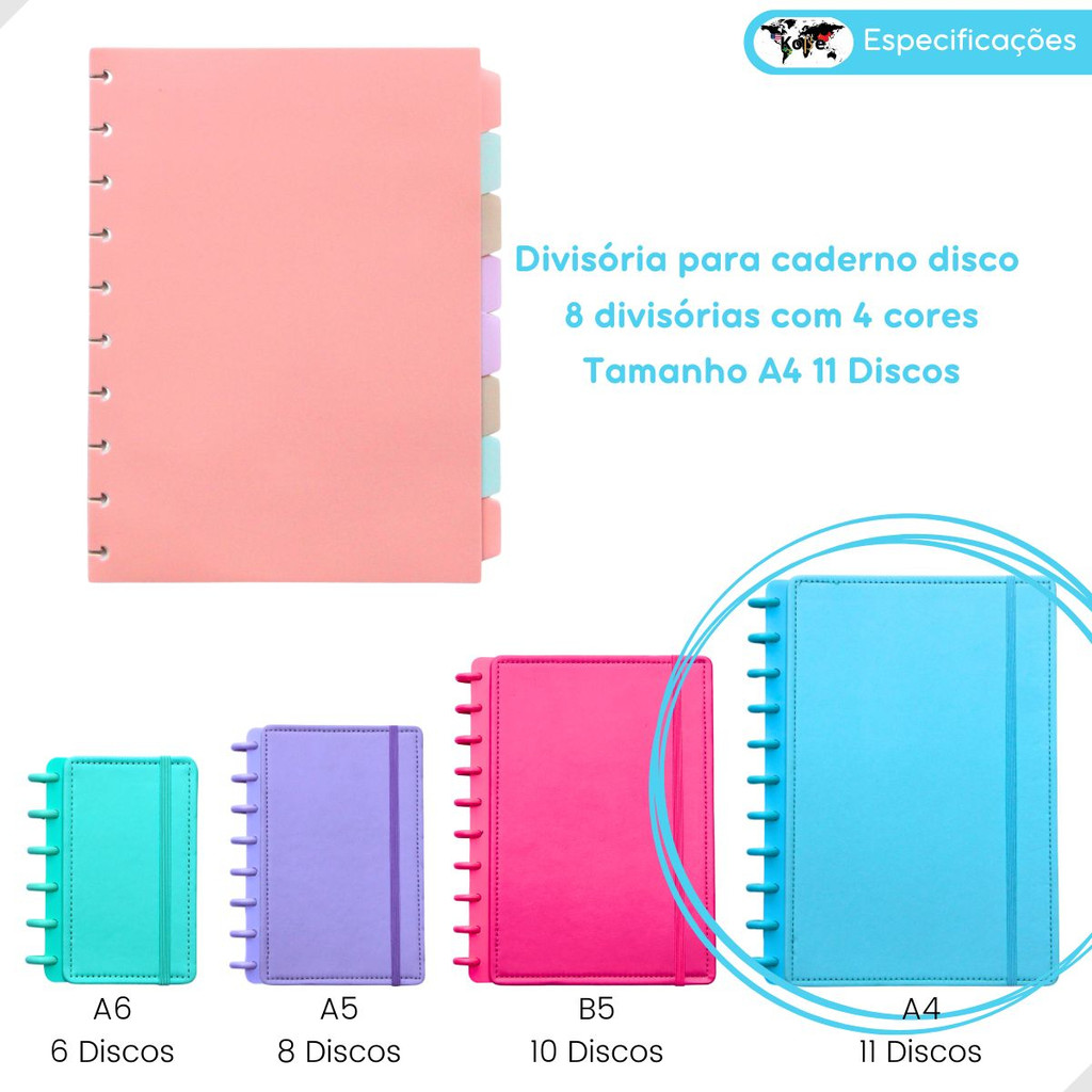 4/8 Divisórias Coloridas Caderno Inteligente A4/B5/A5 Universitário