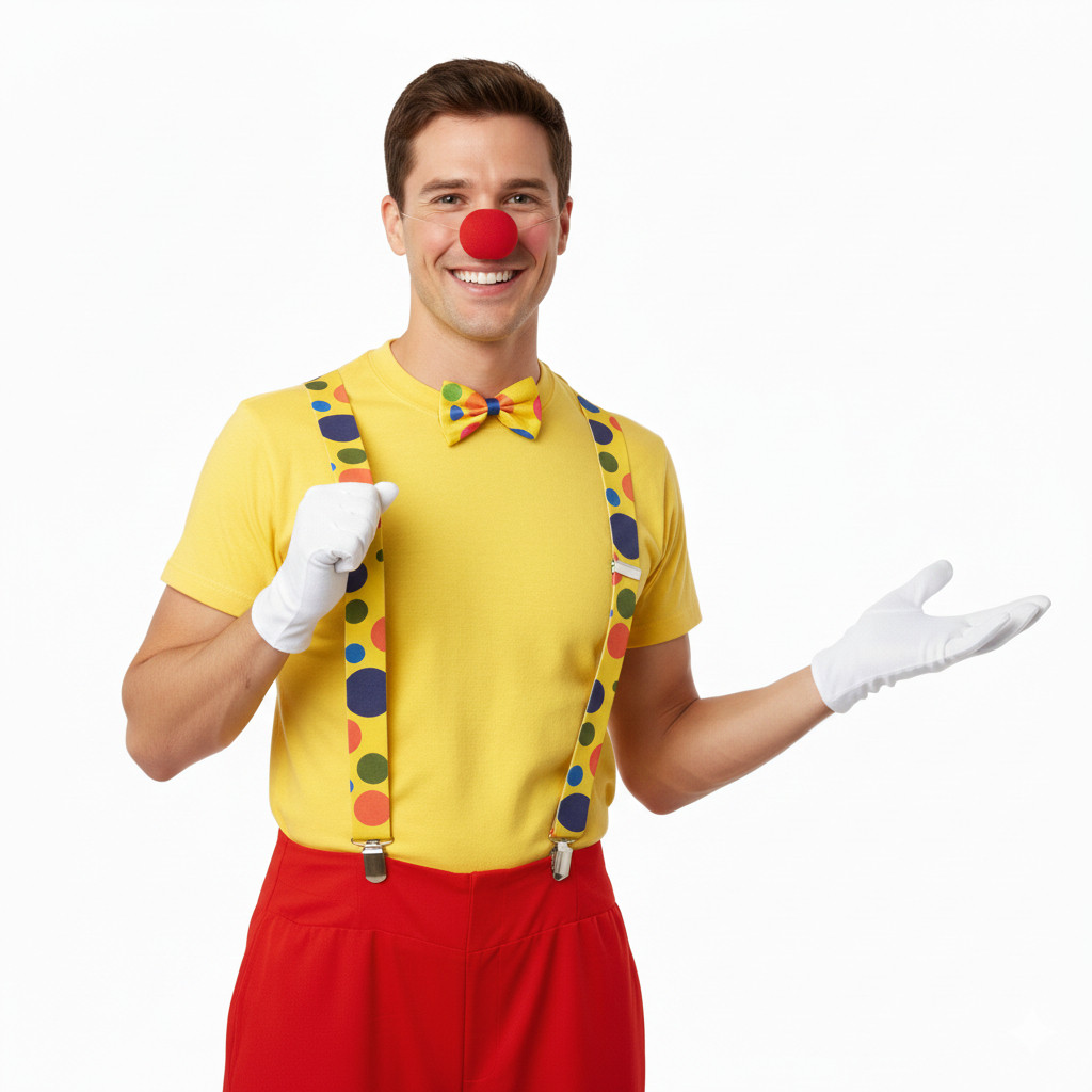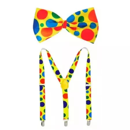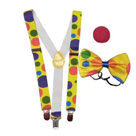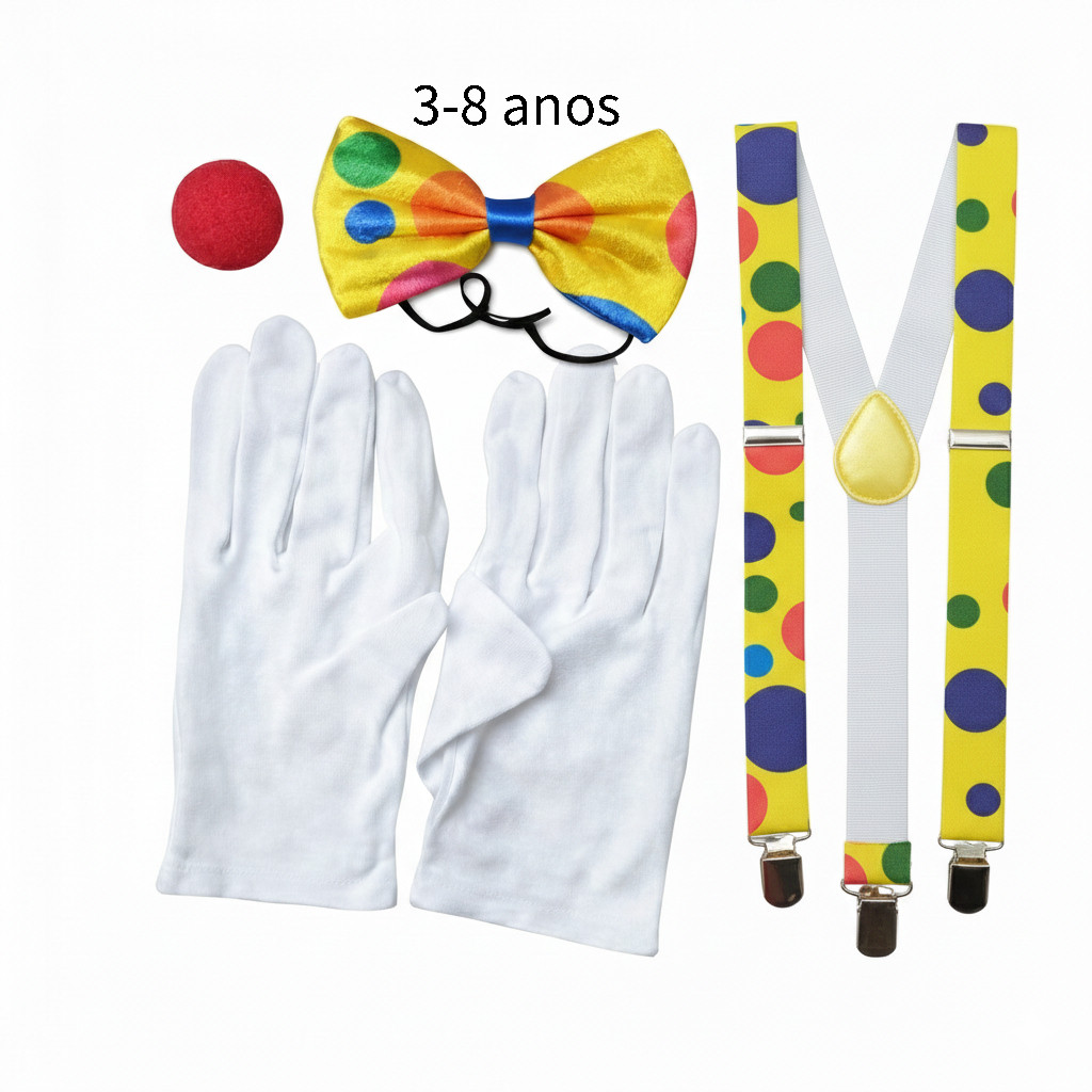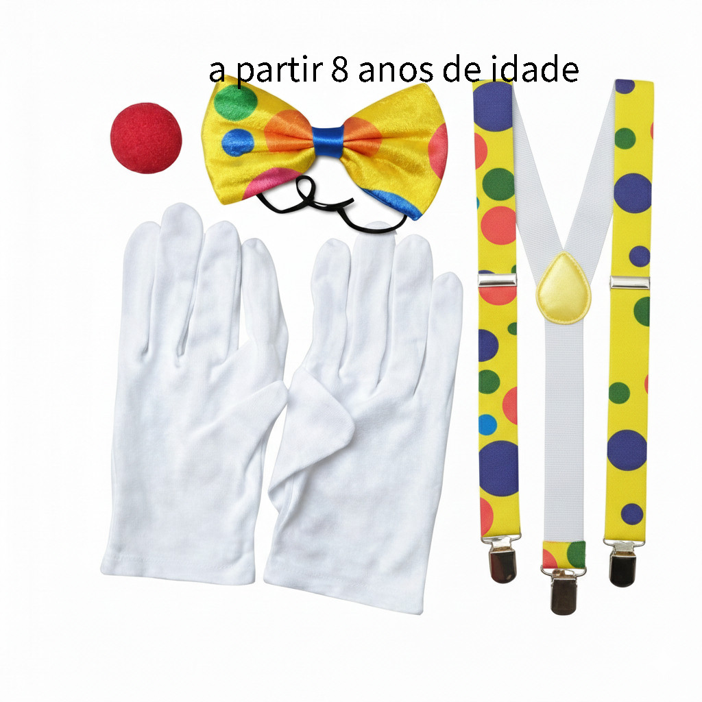Kit Fantasia Palhaço Carnaval - Suspensório, Gravata, Nariz e Luvas - Adulto e Infantil